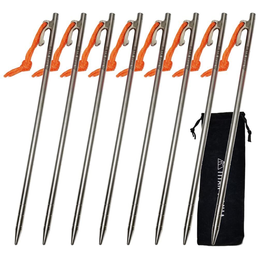 TITAN MANIA(チタンマニア) ペグ チタン製 チタンペグ 軽量 強靭 20/24/30/35/40㎝ 4本/6本/8本セット テントペグ ステーク ソリッド 山地 砂利 草地 硬い地面 設営用具 ソロキャンプ アウトドア キャンプ用品 収納袋付き | lcsshop