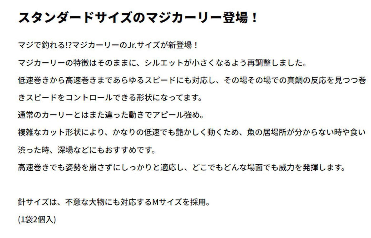搭載フック: Mサイズフック 3本仕様(オリジナル国産フック)