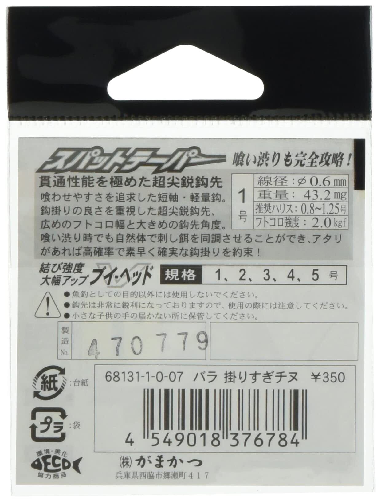 【商品名】 がまかつ(Gamakatsu) 掛リスギ フック チヌ 釣り針 各種 【商品説明】 号数:1 入本数:19