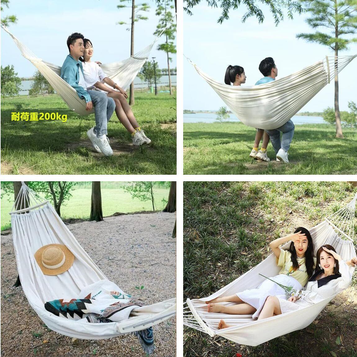 サムコス ハンモック ハンガーラックスイングチェア コンパクト チェアハンモック約260*150cm 2人用 室内 室外 兼用 折りたたみ ハンギング 公園 アウトドア キャンプ 吊り下げ 吊り椅子 Sフック/紐付け/収納袋付き 耐荷重200kg(ベージュ) | lcsshop