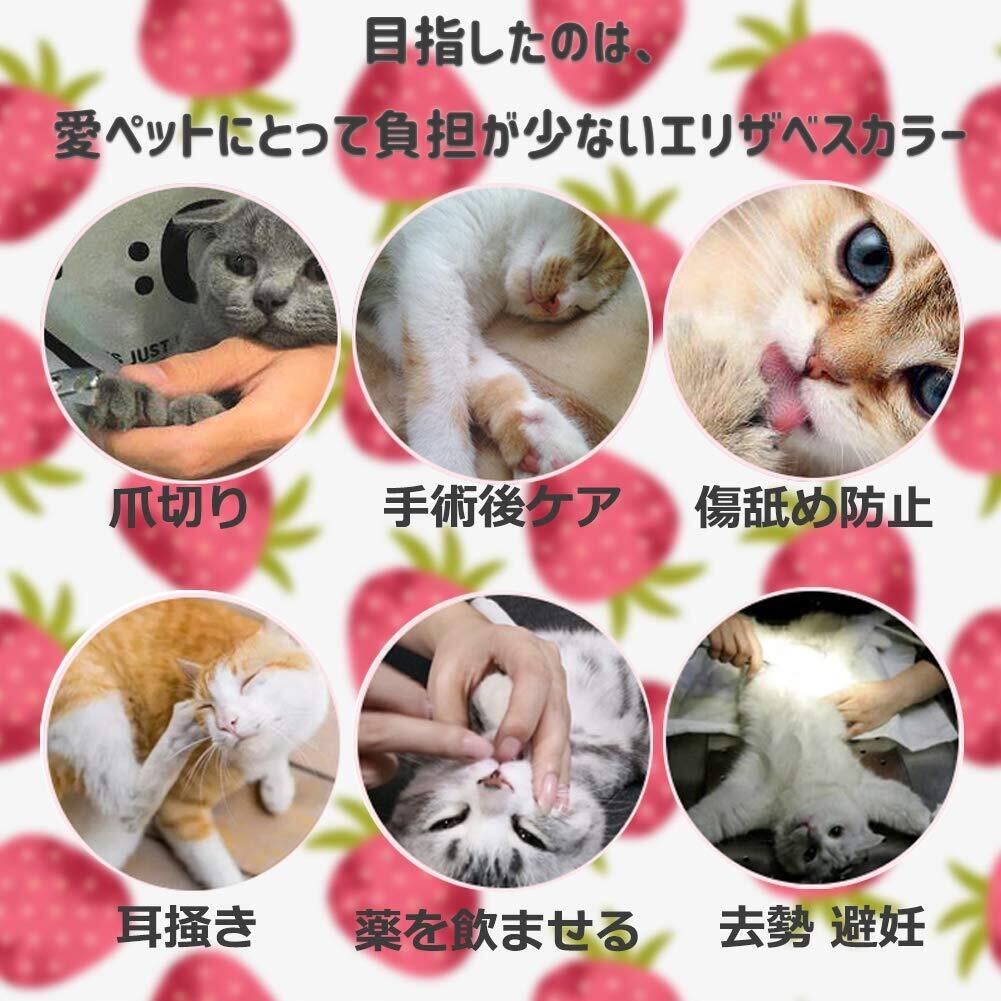 KUVEELA PET エリザベスカラー 軽量 薄い 改良型 サポートバー付き 猫 小型犬 ドーナツカラー エリザベス クッション 手術後ケア 傷口なめ防止 噛み防止 耳掻き 爪切り 去勢 避妊(いちご、M)