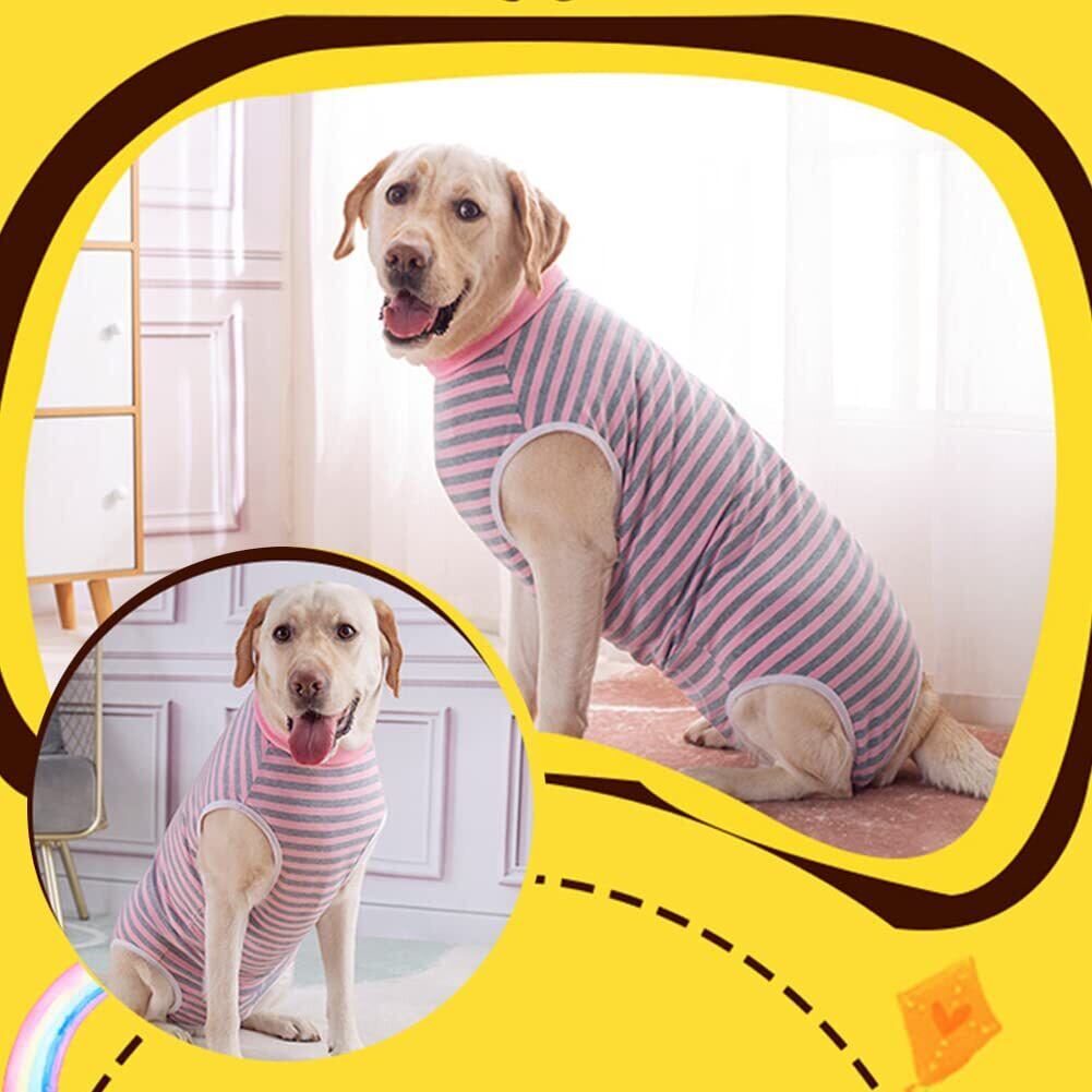KUVEELA PET 術後服 犬服 犬術後服 術後ウェア 術後カバー服 保護服 介護服 避妊 離乳 傷口保護 皮膚病 大型犬 中型犬(グレー+ピンク 5L)