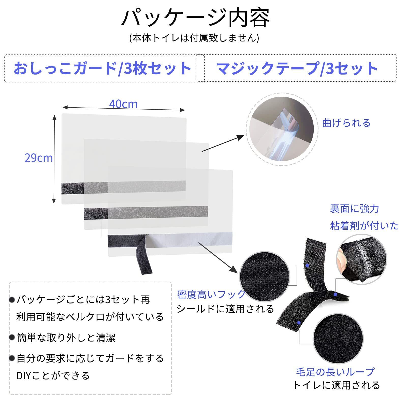 【取り付け簡単】シールドは、直線または曲線の側面を持つのオープン式トイレに簡単に適用することができ、これらの再利用可能なプラスチックカバーは、簡単に取り外し、クリーニングのためのマジックテープのストリップを備えています。分解出来るようになった事で、お手入れがとても楽になりました。