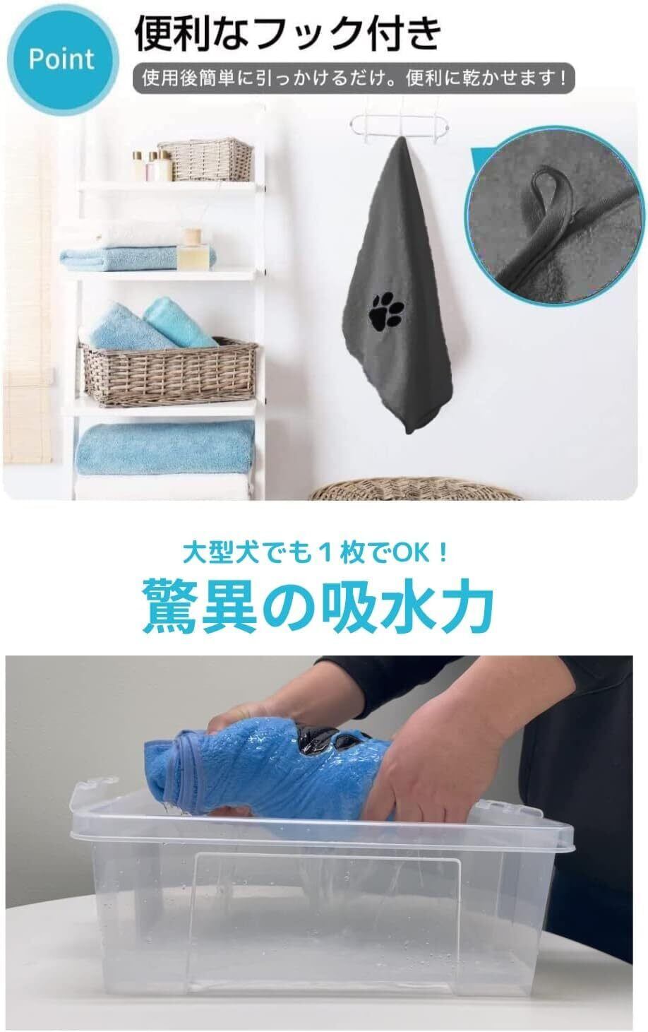 【2枚セットでお得&洗い替えに便利】 毎日使うペットタオルだからこそ、洗い替えに便利な2枚組。小型犬から大型犬、猫まで幅広いペットに対応し、シャンプー後や散歩帰りの体拭きにも活躍。