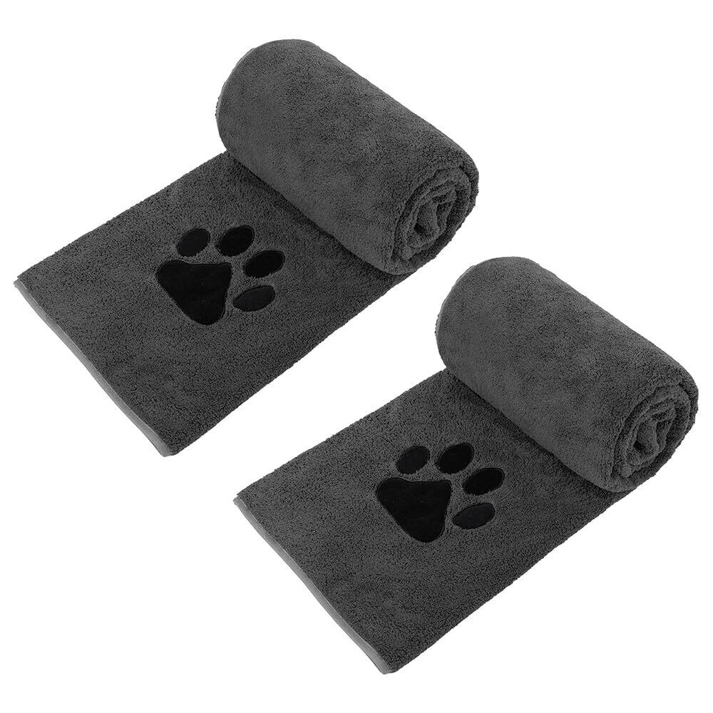 Perco ペット用タオル 2枚セット 超吸水 厚手 マイクロファイバー 犬 猫 タオル 速乾 体拭き用 (75cm×127cm) (ダークグレー)