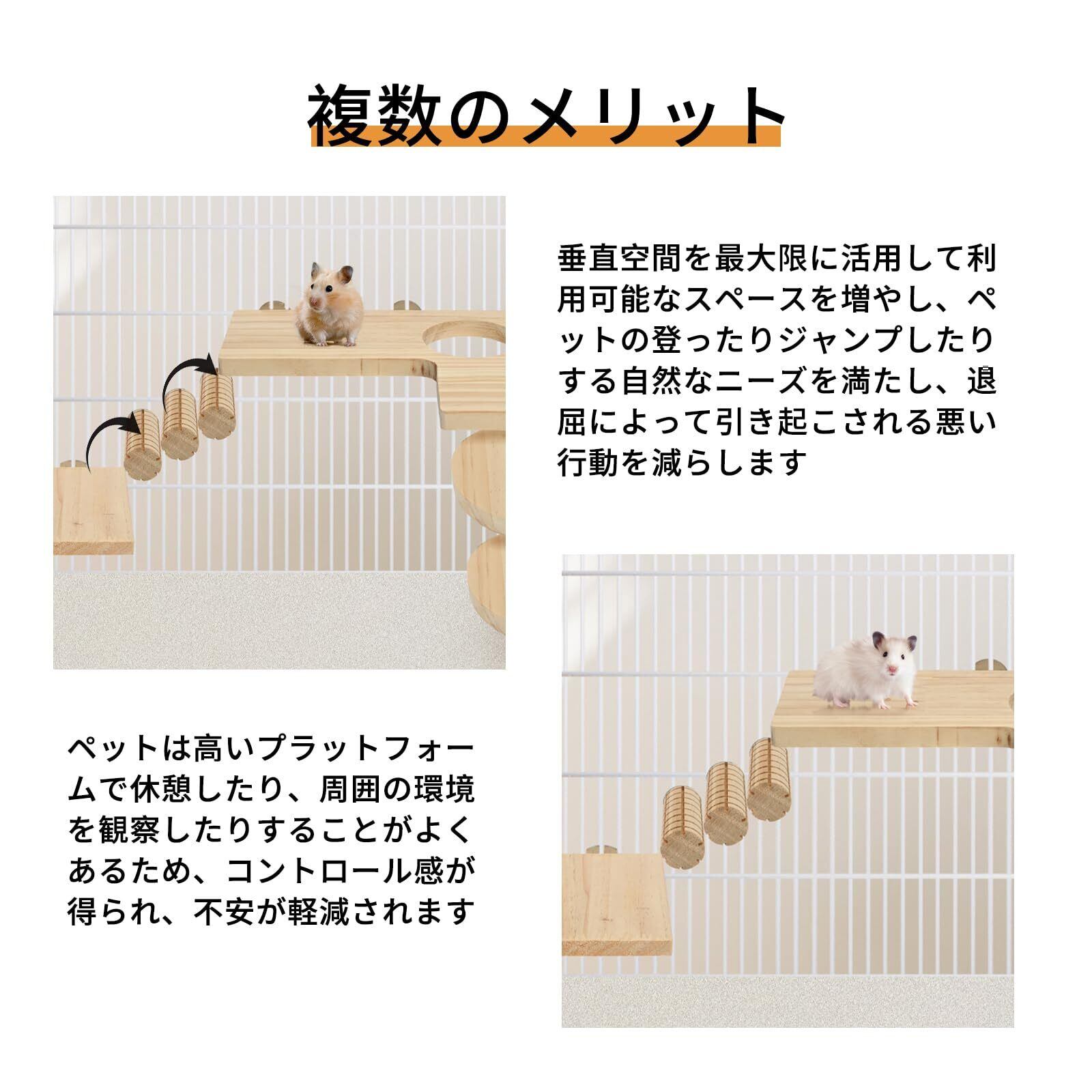 【天然木】ハムスターステージセットは高品質の天然木で作られています。げっ歯類のペットにとって、噛むことは歯の健康を維持するために不可欠であり、天然木のプラットフォームは小動物が安心させるに噛むことを可能にし、ペットが遊ぶ場所を提供します。非常に耐久性があり、ペットにも優しいです。小動物の本能的な欲求を満たしながらも、健康には影響しません、毎日の暮らしにさらなる安心をもたらします。