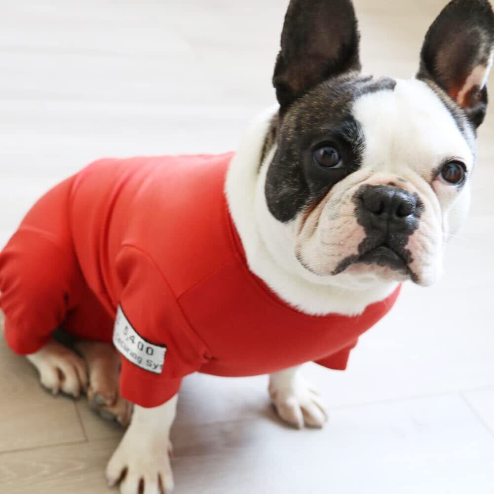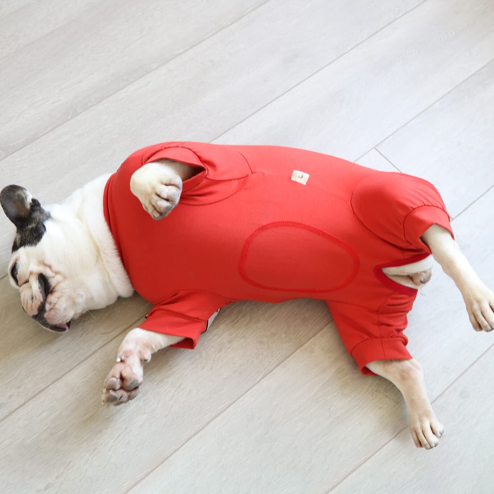 KUVEELA Pet 犬 服 犬術後服 術後ウェア フレンチブルドッグ パグ 長袖 エリザベスカラーに代わる オス メス 去勢 避妊 離乳 傷口保護(レッド、L)