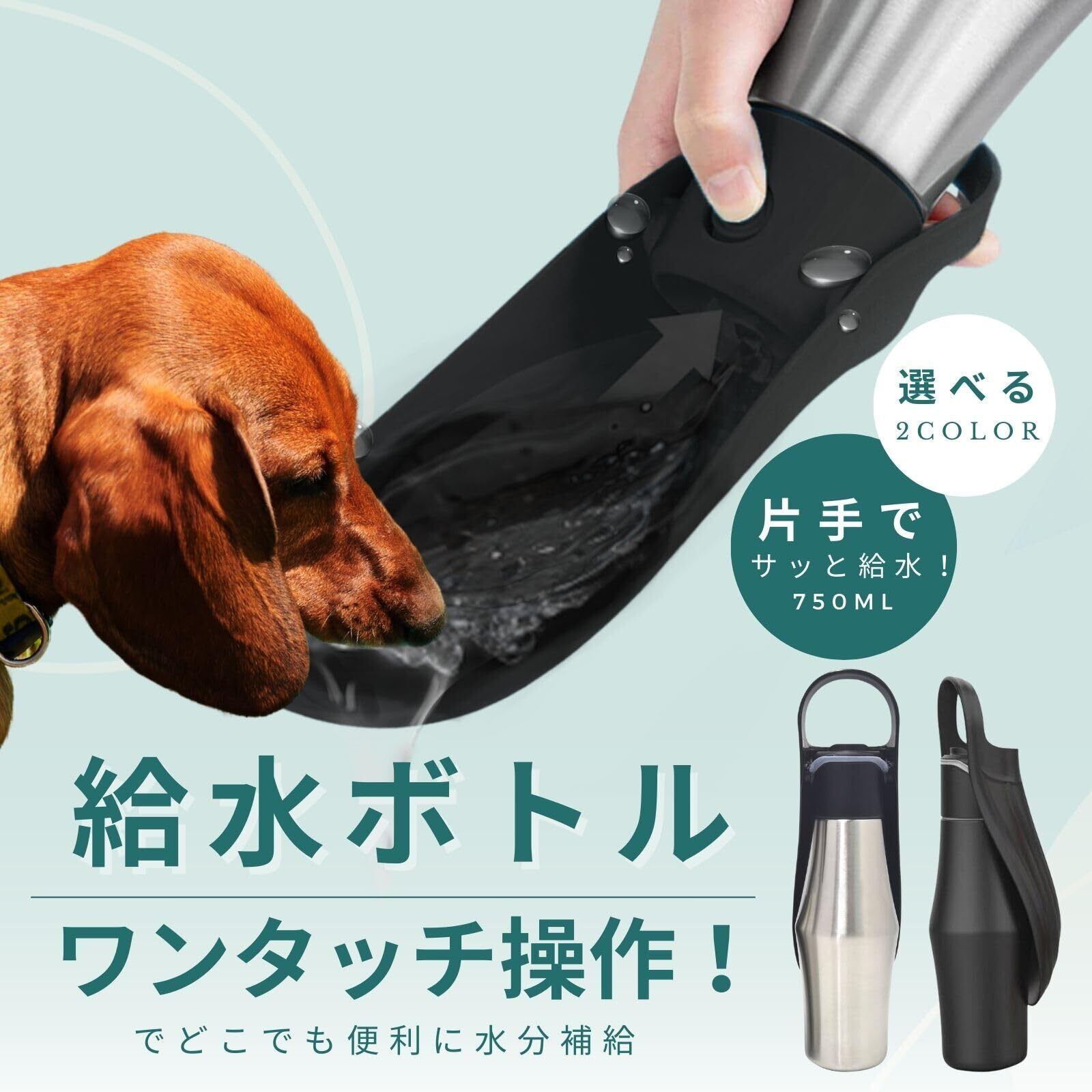 Archnote 犬 水飲み器 散歩 水 給水ボトル 水筒 ウォーターボトル ペットウォーターボトル ステンレス 750ml ブラック