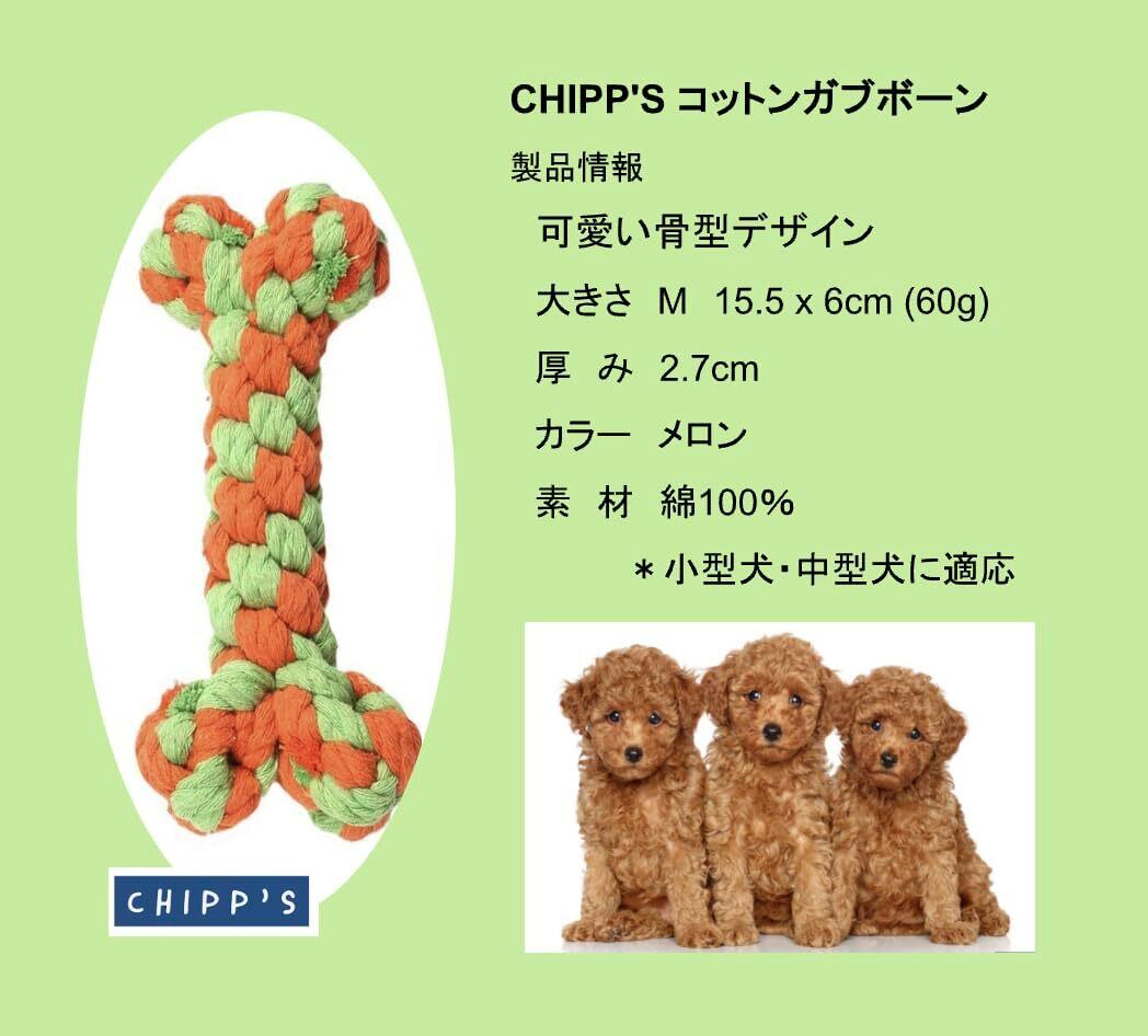 CHIPP'S 犬の噛むおもちゃ コットンガブボーン, 犬用おもちゃ, ロープ, 歯磨き, ストレス解消, イタズラ防止,中型犬 (メロン)