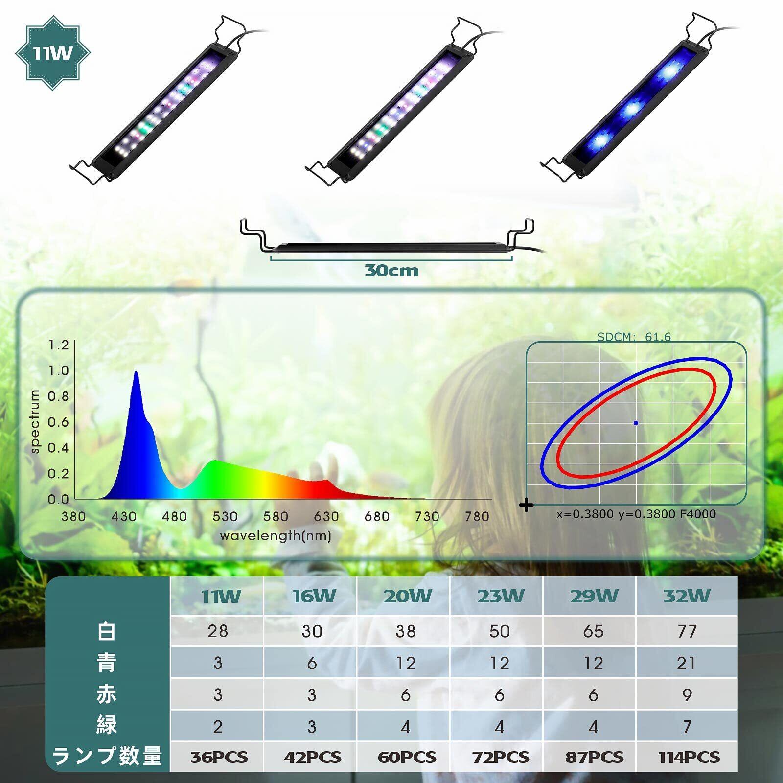hygger 水槽ライト 30-45cm水槽対応 6H/8H/12Hタイマー 10段階明るさ調整 3照明モード 照明 ledライト アクアリウムライト 防水 水草育成 熱帯魚 観賞魚 飼育 11W