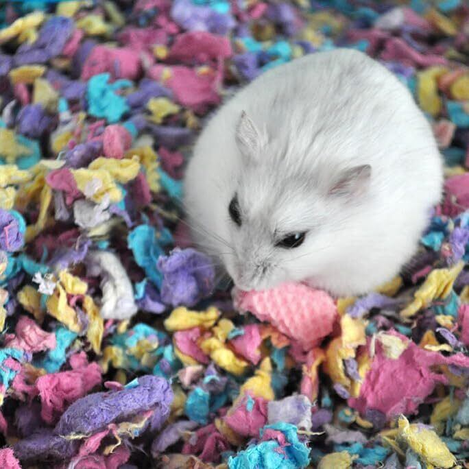 ・汚れたり、濡れたりした部分は毎日取り除き、新しい床材を補充してください。1週間に1-2回程度、ケージ内の床材を全て取り除き、新しいものと交換してください。古い床材は燃えるゴミとして捨ててください。