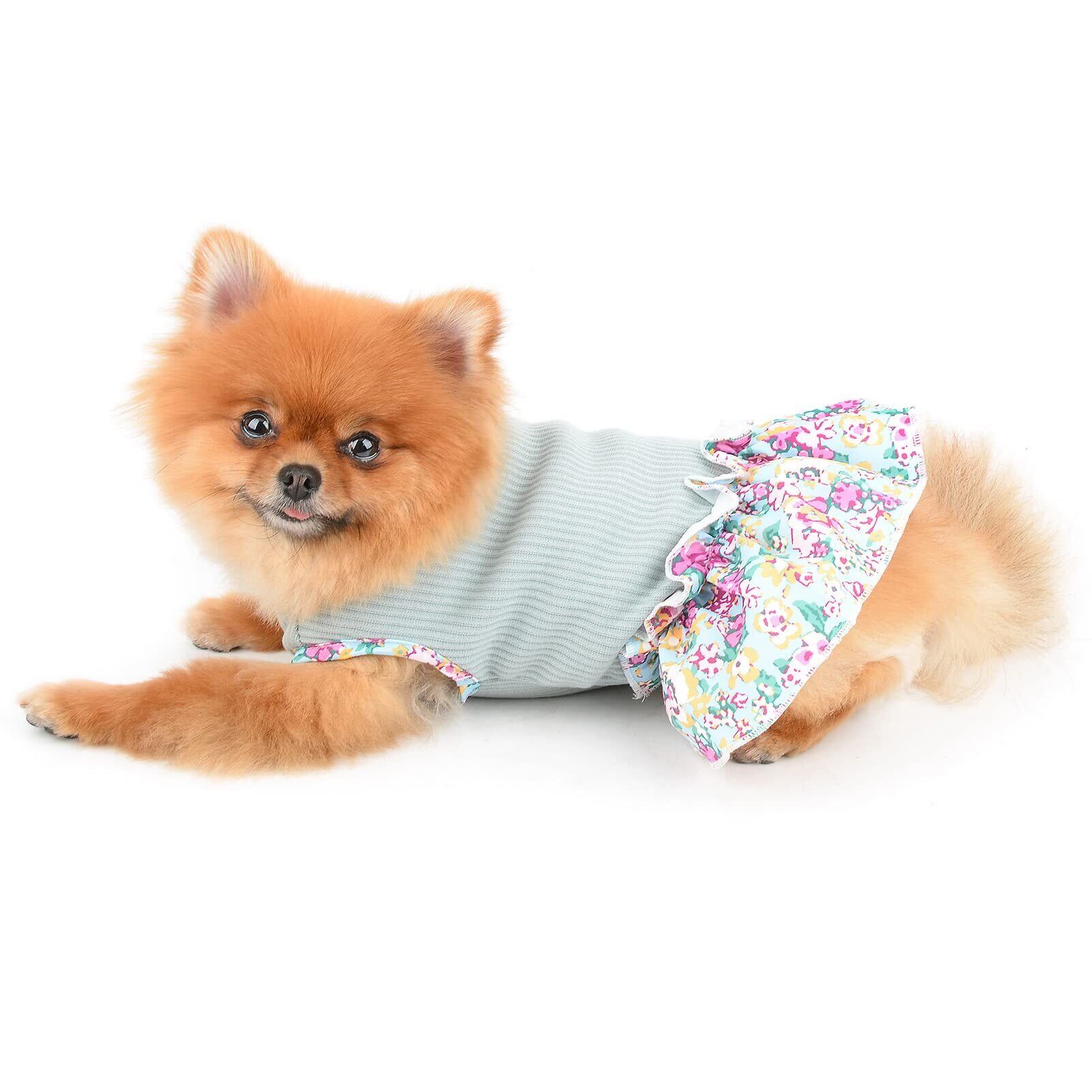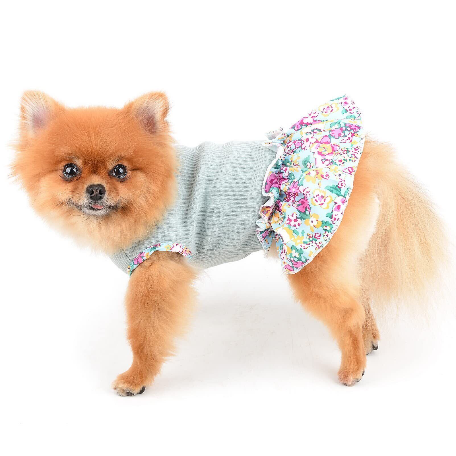 SMALLLEE_LUCKY_STORE 犬服 小型犬 春夏 ニット花柄 ワンピース お姫様 簡単着脱 女の子猫服 洋服,グリーン,L