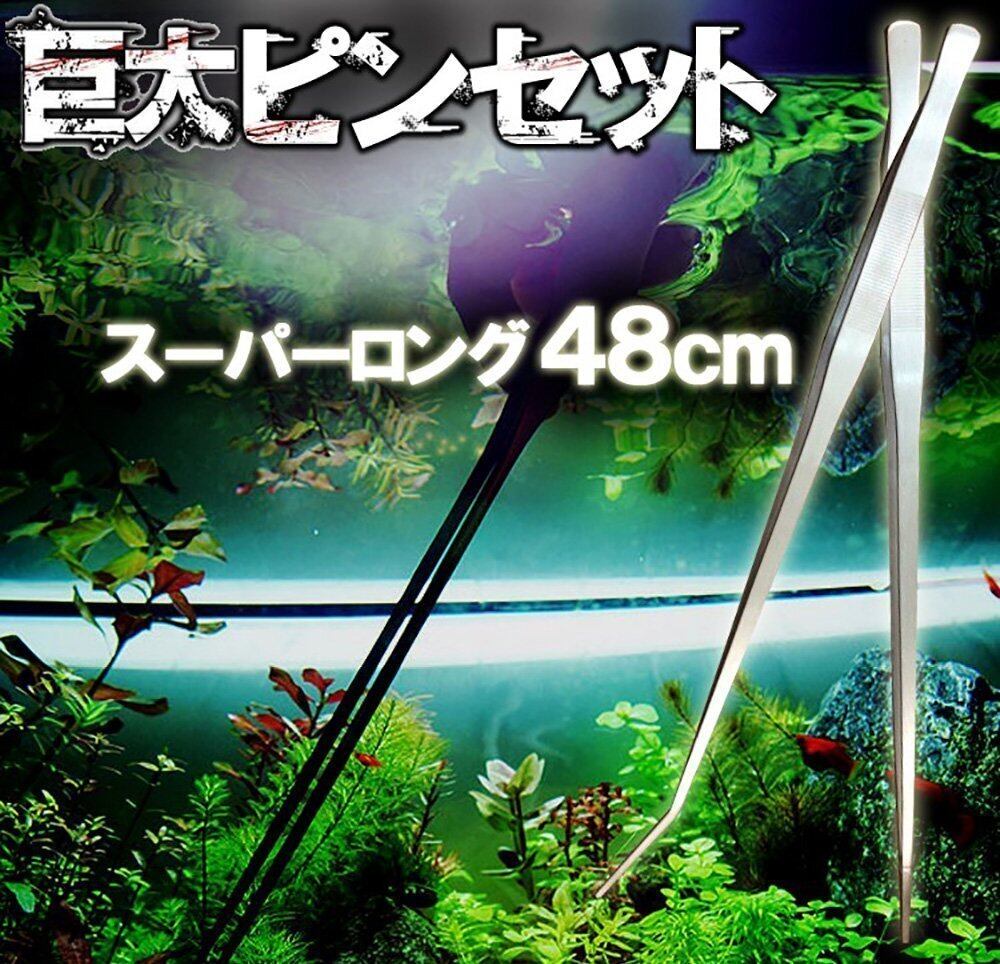 <商品説明>水槽内の水草植栽・配置等に役立つ48㎝の超ロングなピンセットです。サビに強いステンレススチール製です。先端のギザギザが掴んだものをしっかり固定。