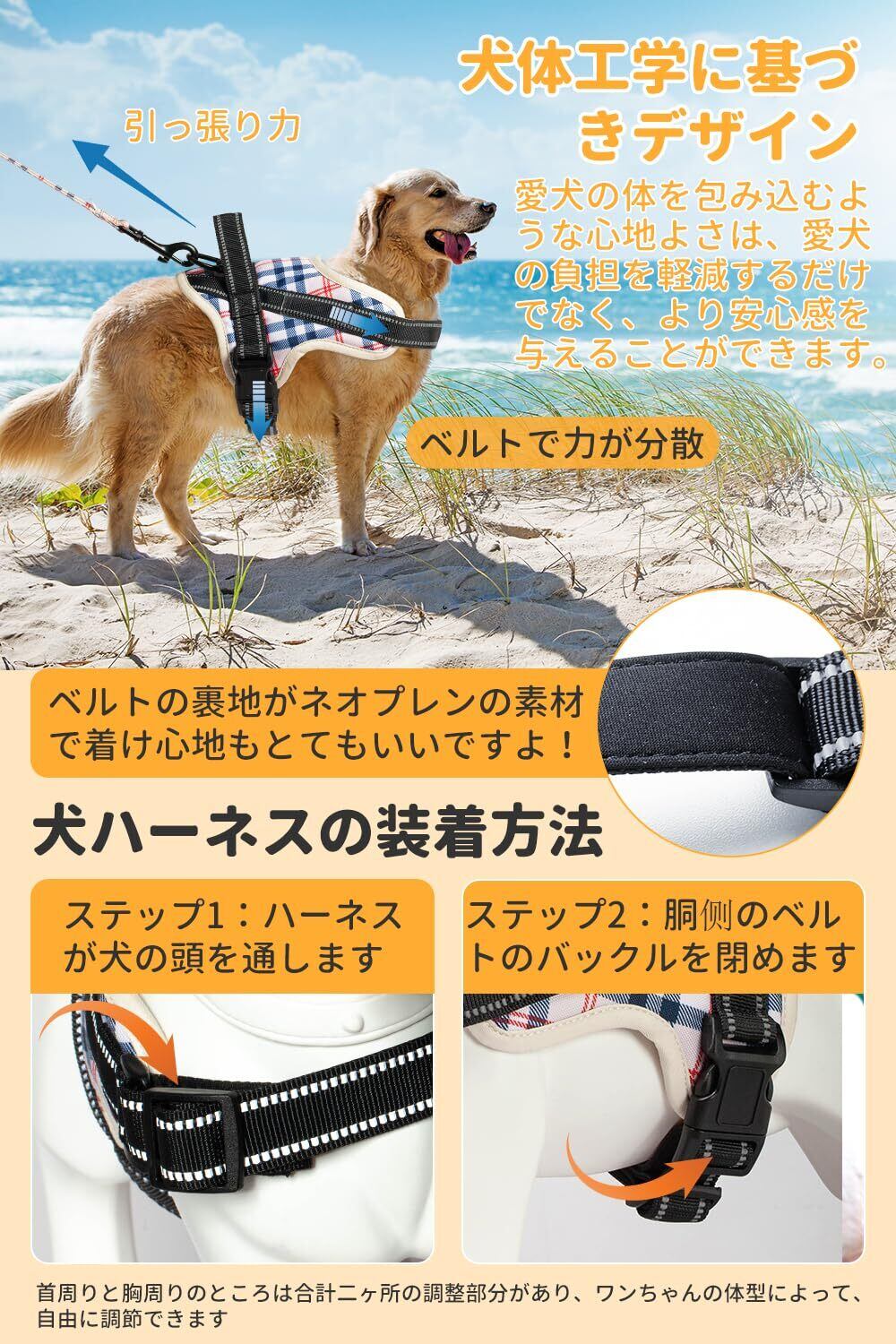【最新型 獣医師の推薦犬ハーネス】OGURIYA 犬用胴輪 小型犬/中型犬/大型犬ハーネス 喉に優しい 犬ハーネス夏対策 ネームプレート 可愛い 犬体工学に基づいた 5色選択(カーキチェック柄,M) | lcsshop