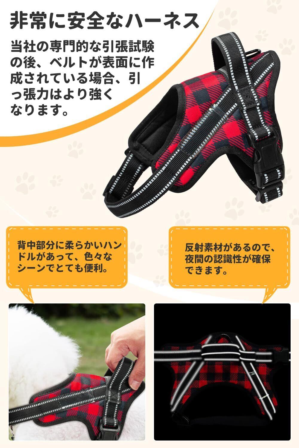 【最新型 獣医師の推薦犬ハーネス】OGURIYA 犬用胴輪 小型犬/中型犬/大型犬ハーネス 喉に優しい犬ハーネス夏対策 ネームプレート 可愛い 犬体工学に基づいた 5色選択(赤黒チェック柄,L) | lcsshop
