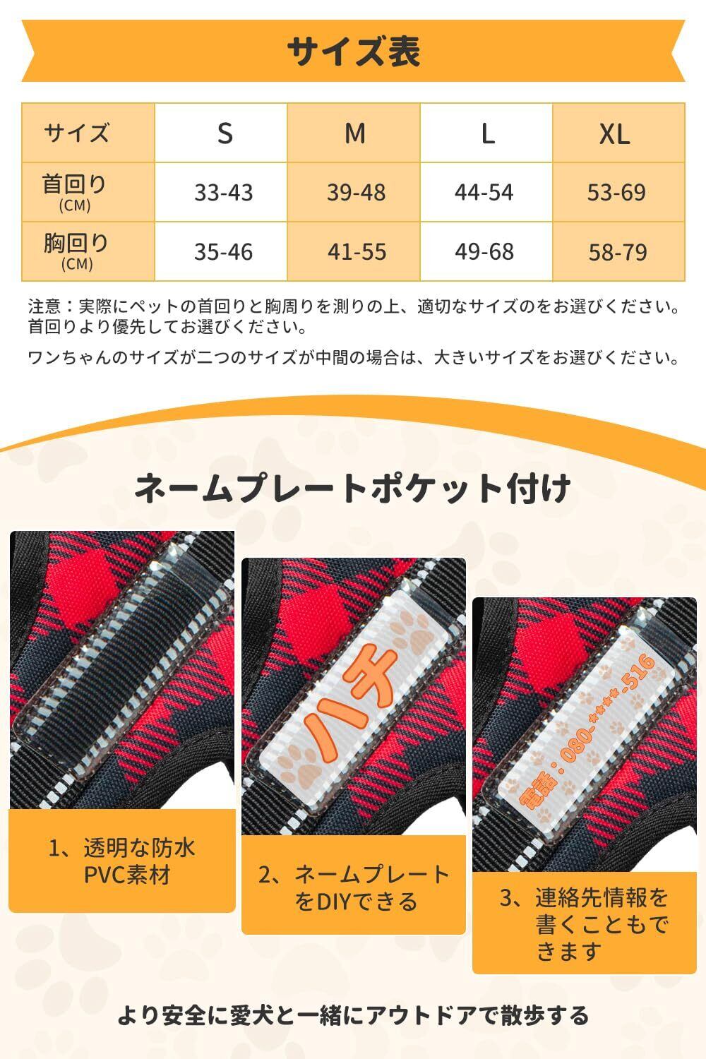 【最新型 獣医師の推薦犬ハーネス】OGURIYA 犬用胴輪 小型犬/中型犬/大型犬ハーネス 喉に優しい犬ハーネス夏対策 ネームプレート 可愛い 犬体工学に基づいた 5色選択(赤黒チェック柄,L)