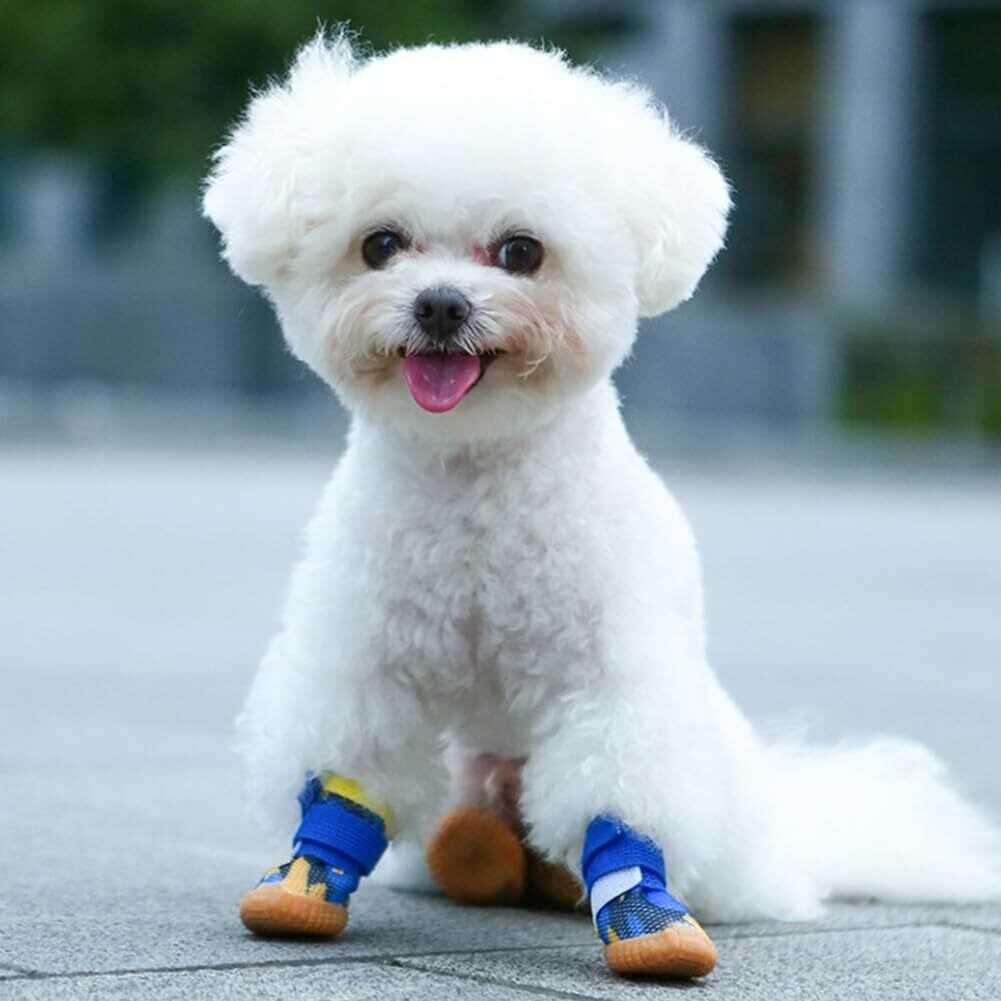 足の汚れやガラス・虫などによるケガの防止、夏場の焼けたアスファルトに有効なワンちゃん用靴(4個セット)です。