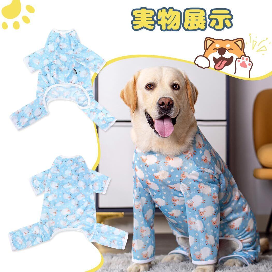 AmzBarley 犬 服 夏 ひんやり メッシュ ロンパース 長袖 薄手 通気性 伸縮性 軽量 柔らかい 速乾 洗濯可能 犬 夏服 冷感 犬 空調服 接触冷感 犬服 夏用 冷却ベスト ひんやり 犬服 夏用 暑さ対策 日焼き防ぐ 脱毛保護 虫よけ お出掛け お散歩 犬の服 春 夏 ドッグウェア 中型犬 大型犬 柴犬 ラブラドール