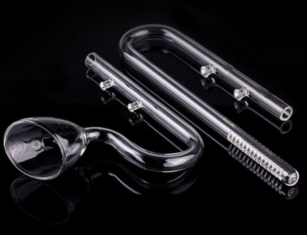 クリアガラス製の水槽用リリィ型出水用パイプと吸水用パイプのセット商品です。