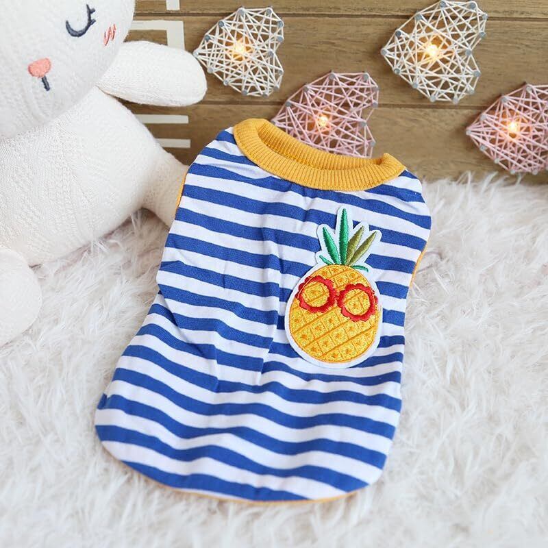 RIOSTUDIO 犬 服 春 夏 極小サイズ 犬 猫 かわいい すずしい ワンコ服 ドッグウェア ペット服 パピー犬服 生まれたて子犬服ワッペンボーダータンクトップ(⑮ブルーホワイト×オレンジ+バナナ,XS) | lcsshop