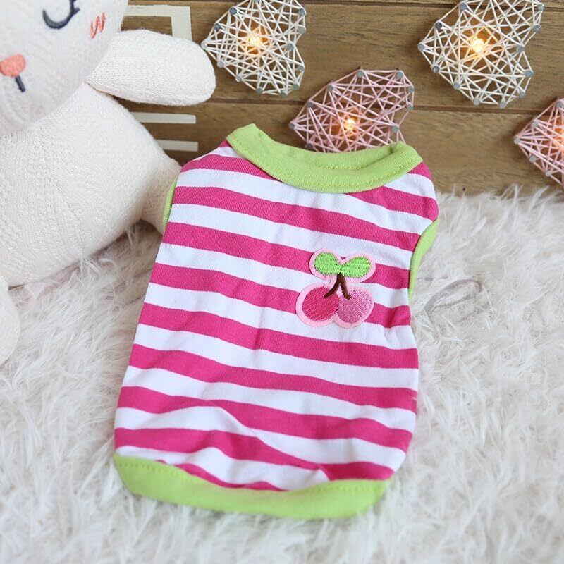 RIOSTUDIO 犬 服 春 夏 極小サイズ 犬 猫 かわいい すずしい ワンコ服 ドッグウェア ペット服 パピー犬服 生まれたて子犬服ワッペンボーダータンクトップ(⑮ブルーホワイト×オレンジ+バナナ,XS)