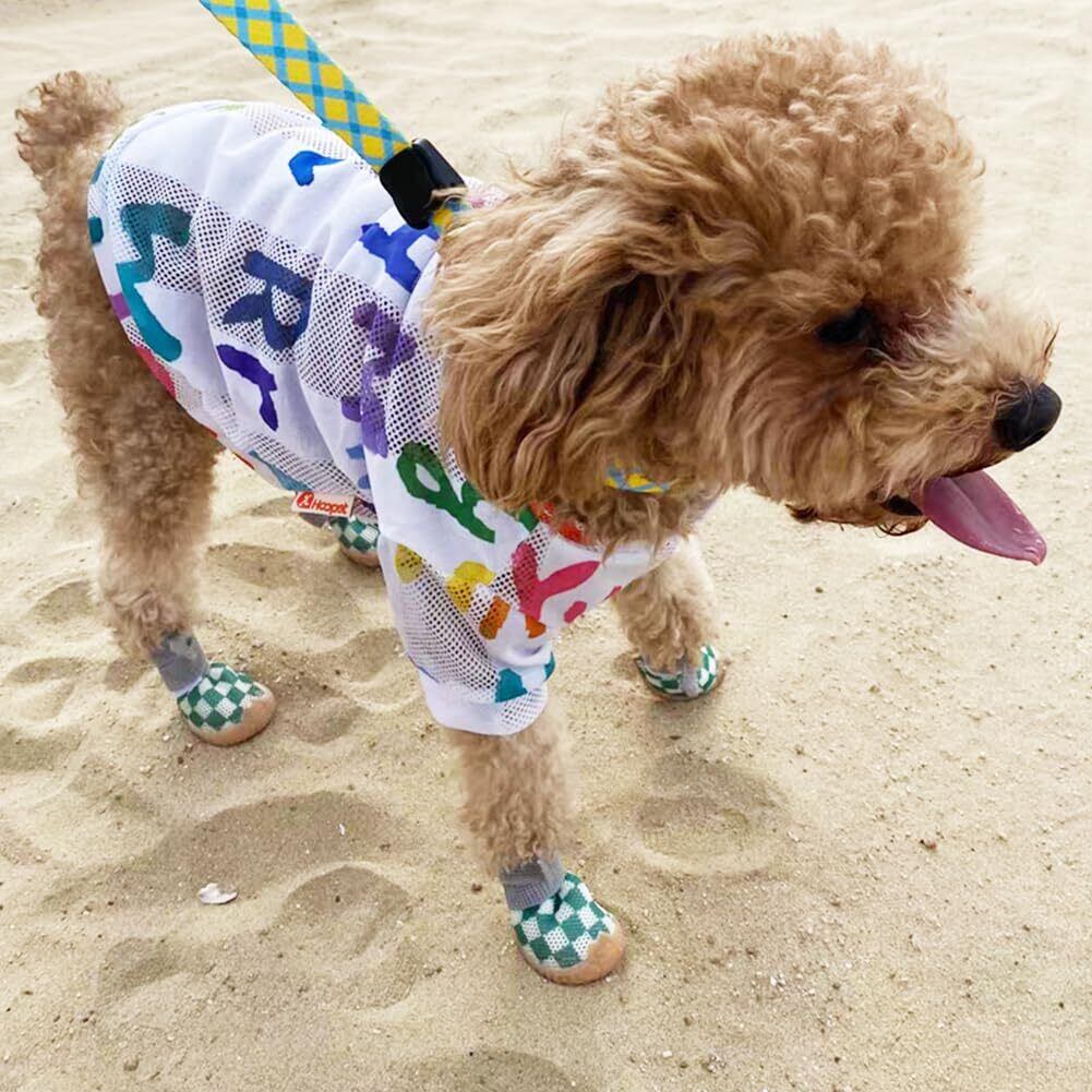 足の汚れやガラス・虫などによるケガの防止、夏場の焼けたアスファルトに有効なワンちゃん用靴(4個セット)です。