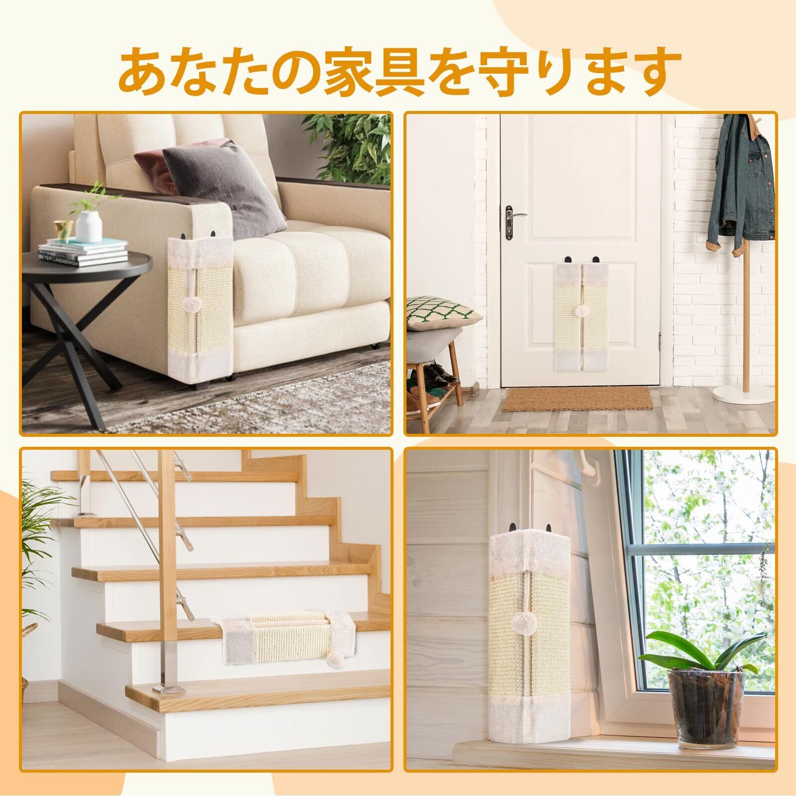 LIFLIX 猫 爪研ぎ コーナー 爪とぎ 壁に貼る 壁掛け 家具 保護 サイザル麻 44 x 21cm