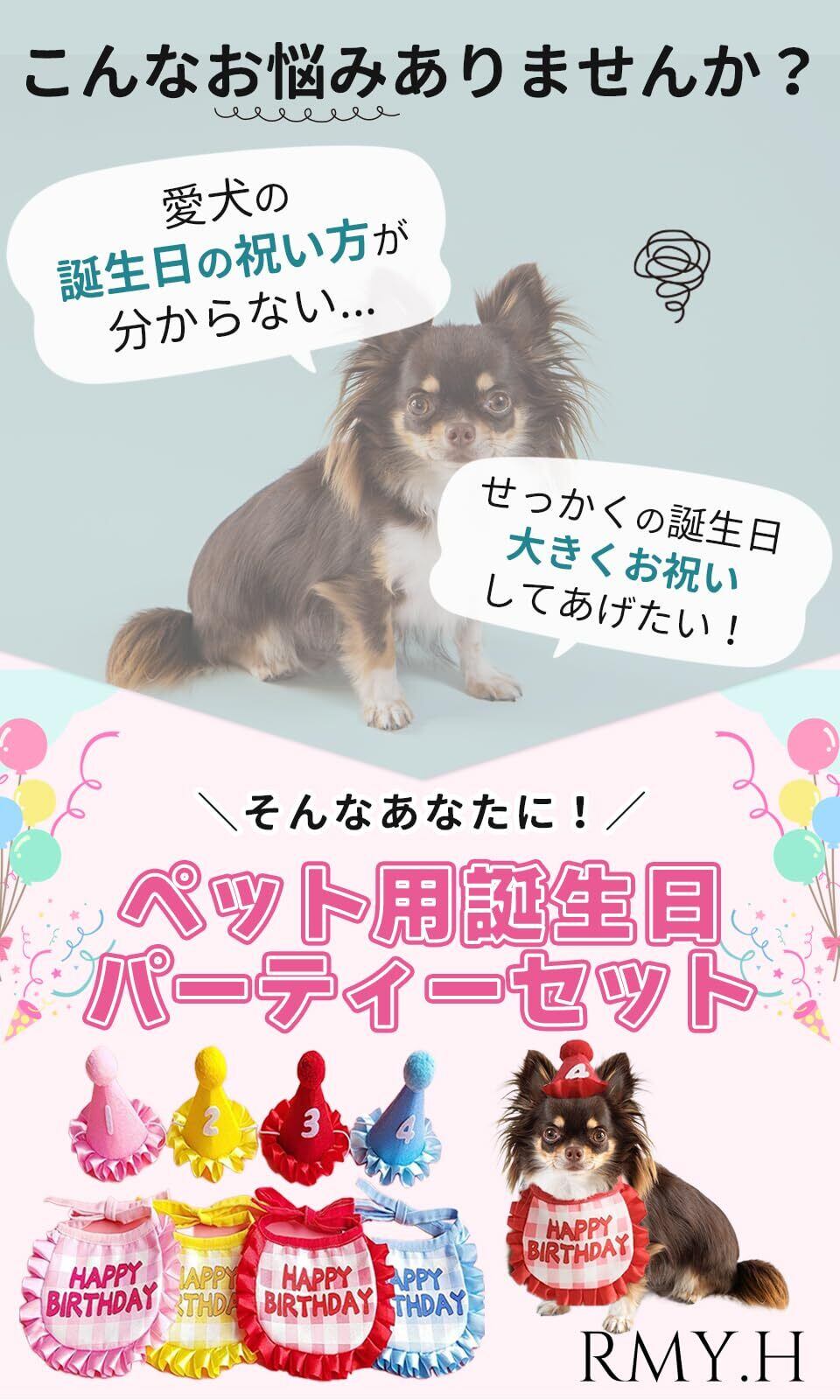 【製品概要】帽子×1、よだれかけ×1、数字×1 ペットの特別な日を祝う為に快適で高品質な素材を使用しています。犬 誕生日、猫 誕生日、記念日などを誕生日グッズで3点セットでお祝いしよう✨