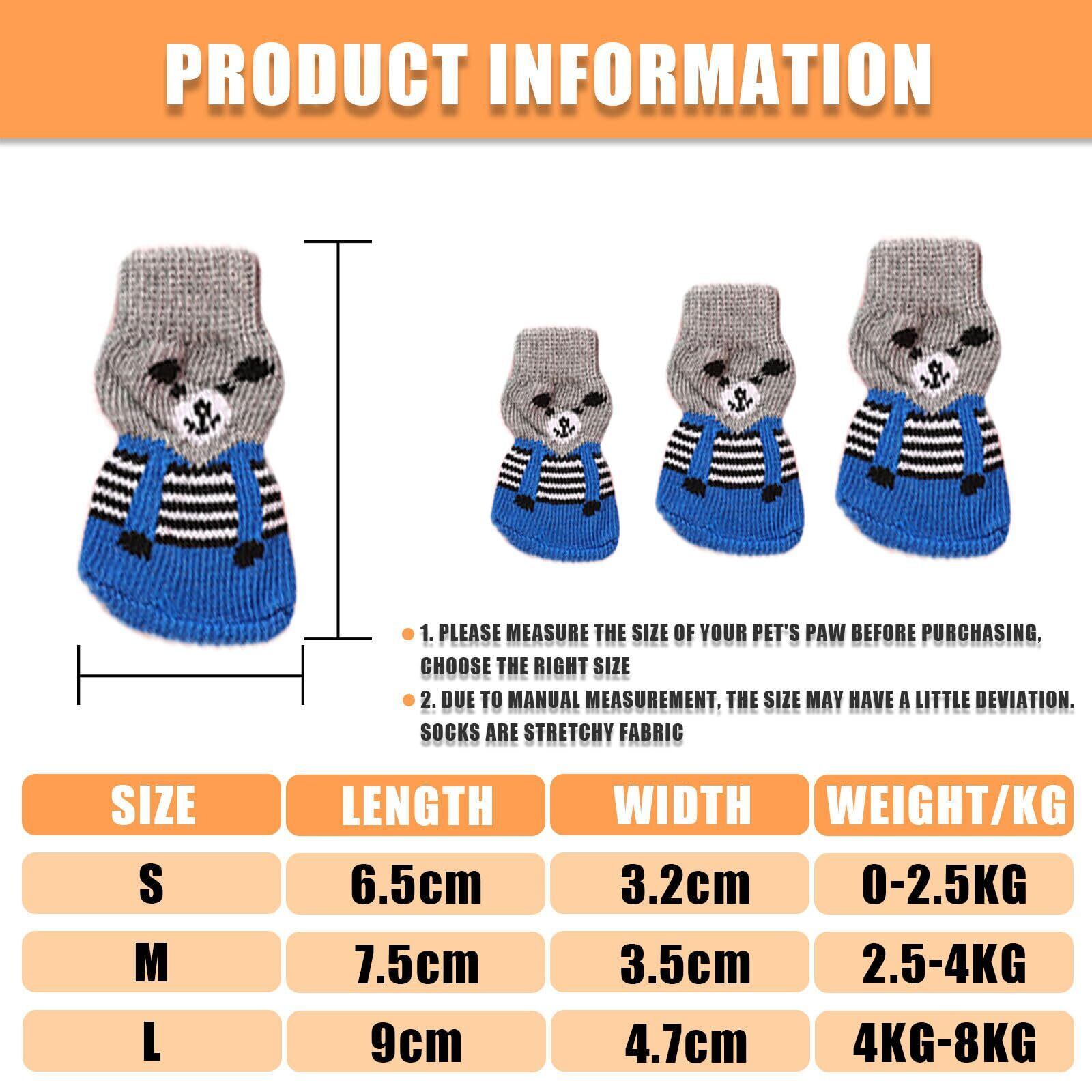 【ペット用靴下】可愛い犬用靴下です。動物のパターンが綺麗でおしゃれです。厚すぎず薄すぎず、一年中快適にお使いいただけます。 【高品質の素材】犬用ソックスは柔らかいコットン素材で作られており、通気性と吸湿性に優れて、快適なつけ心地です。履口は伸縮性が良いので脱ぎにくい。 【サイズ】S:縦6.5cm*横3.2cm、0-2.5KGのペットにおすすめ。M:縦7.5cm*横3.5cm、2.5-4KGのペットにおすすめ。L:縦9cm*横4.7cm、4-8KGのペットにおすすめ。 【デザイン】靴下は愛犬の足にフィットし履かせやすいです。足底にゴム製なので、滑りにくく、愛犬が階段や床、フローリングなどでの滑りを防止します。 【多用途】肉球保護と防寒対策に!靴下を履けば、愛犬が傷口を舐めることを防止できます。床、ソファーなど家具を保護します。冬の場合、寒さ対策のアイテムにもなります。 【パッケージ】犬用靴下4個セット。