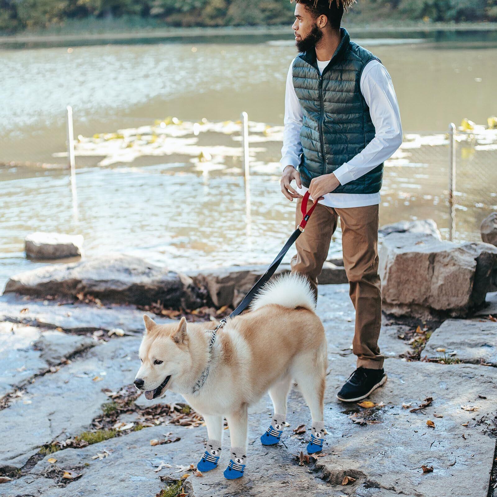 【多用途】肉球保護と防寒対策に!靴下を履けば、愛犬が傷口を舐めることを防止できます。床、ソファーなど家具を保護します。冬の場合、寒さ対策のアイテムにもなります。