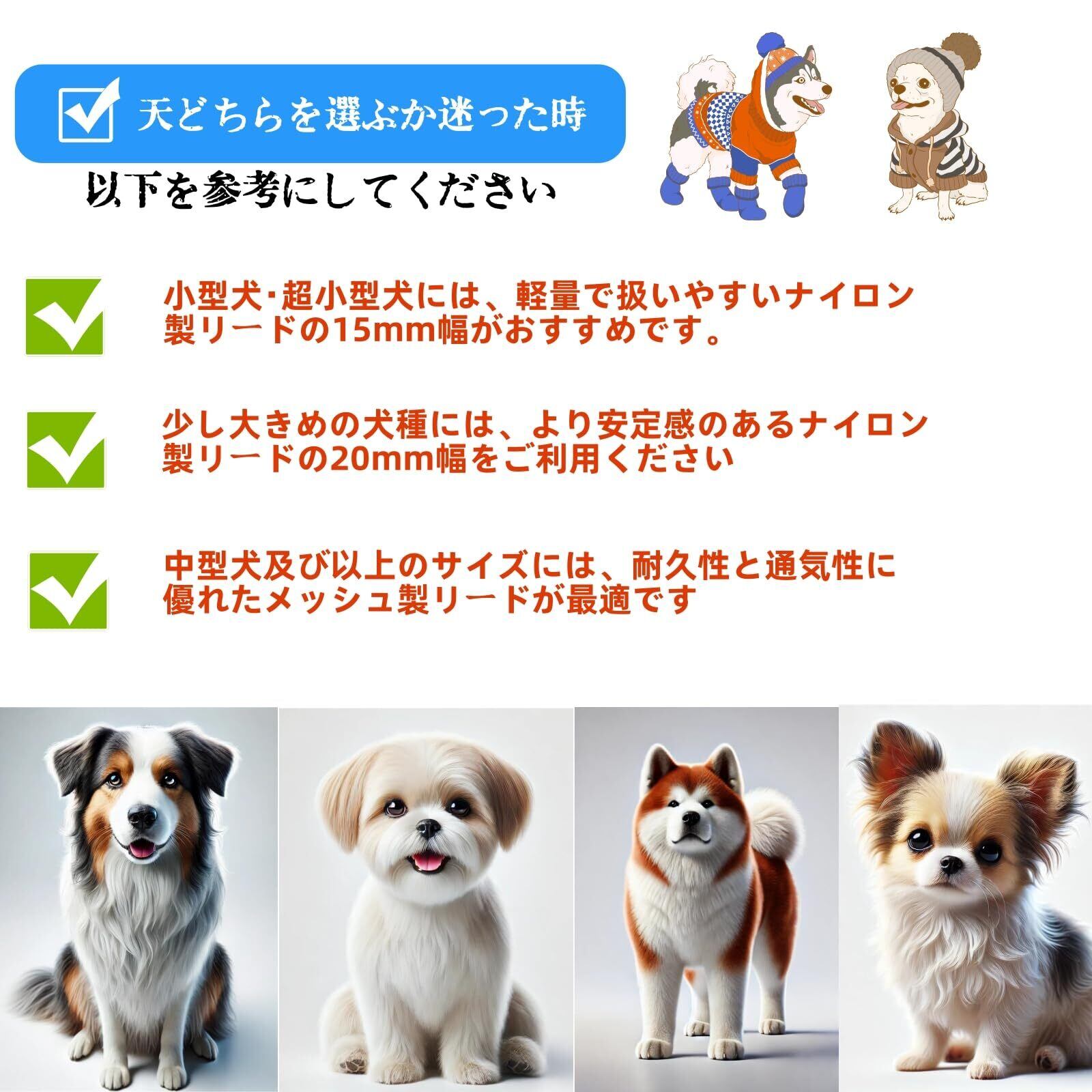 2つのサイズから選べる: 幅15mmと20mmの2種類を用意。長さはどちらも1.5mで、しっかりとした構造で犬を簡単にコントロール可能