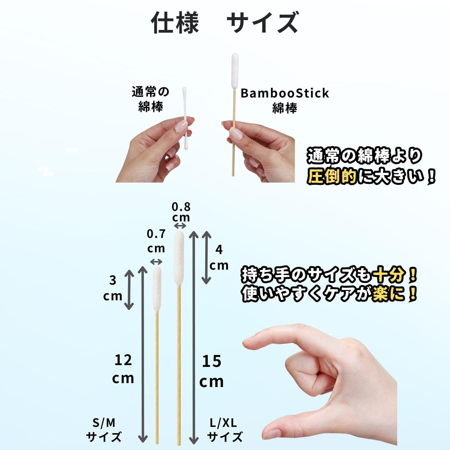 【正規品】BambooStick 犬用綿棒 長い綿棒 ペット用綿棒 大きい綿棒 掃除用綿棒 長い 綿棒 (S/Mサイズ 50本入*2袋)