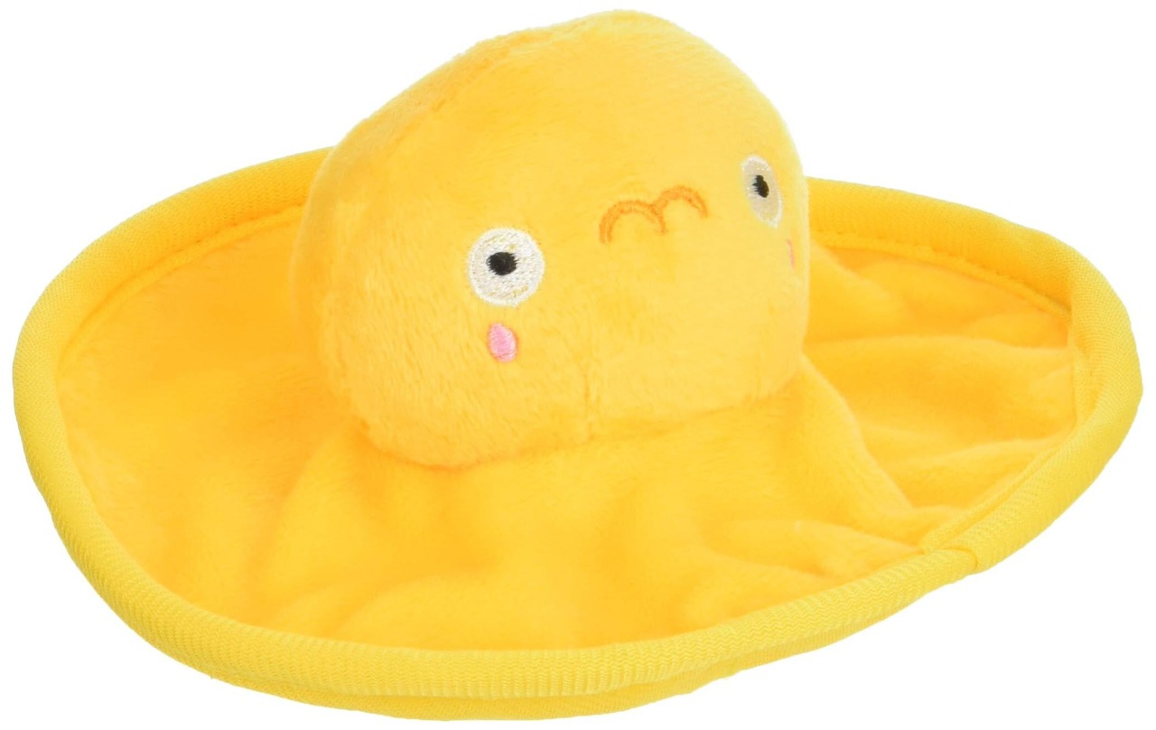 笛とパリパリフィルムの2つの音で噛んでも振っても楽しい!よく飛ぶ形状でふわふわやさしい布のぬいぐるみ!