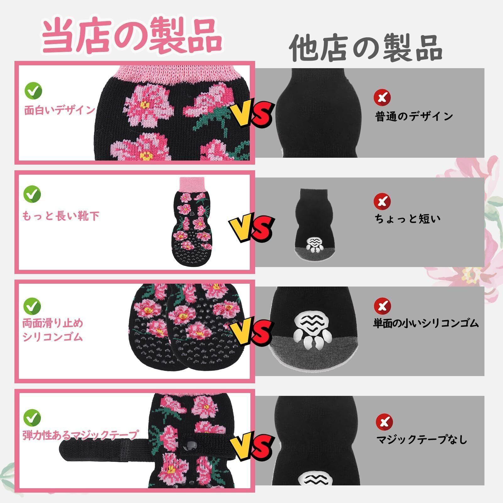 BINGPET 犬 靴下 ペット用靴下 滑り止め 4個セット 肉球保護 犬用靴下 防滑ソックス 柔らかい 脱げない かわいい 転倒防止 室内履き 通気性 老犬 介護サポート 足舐め防止 かわいい おしゃれ 小型犬 中型犬 大型犬 犬靴下 (花ー黒,M) | lcsshop