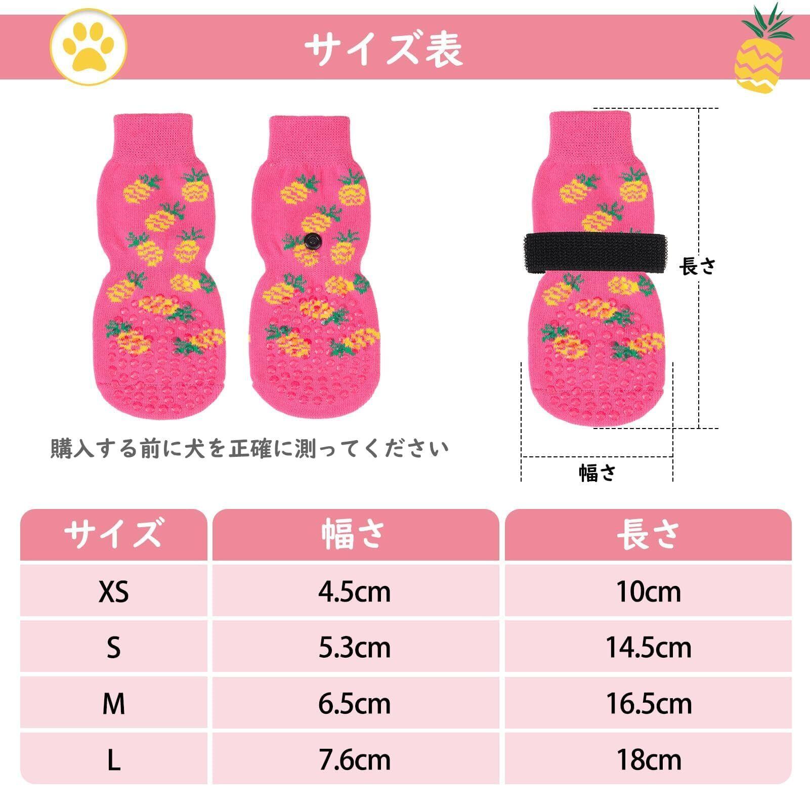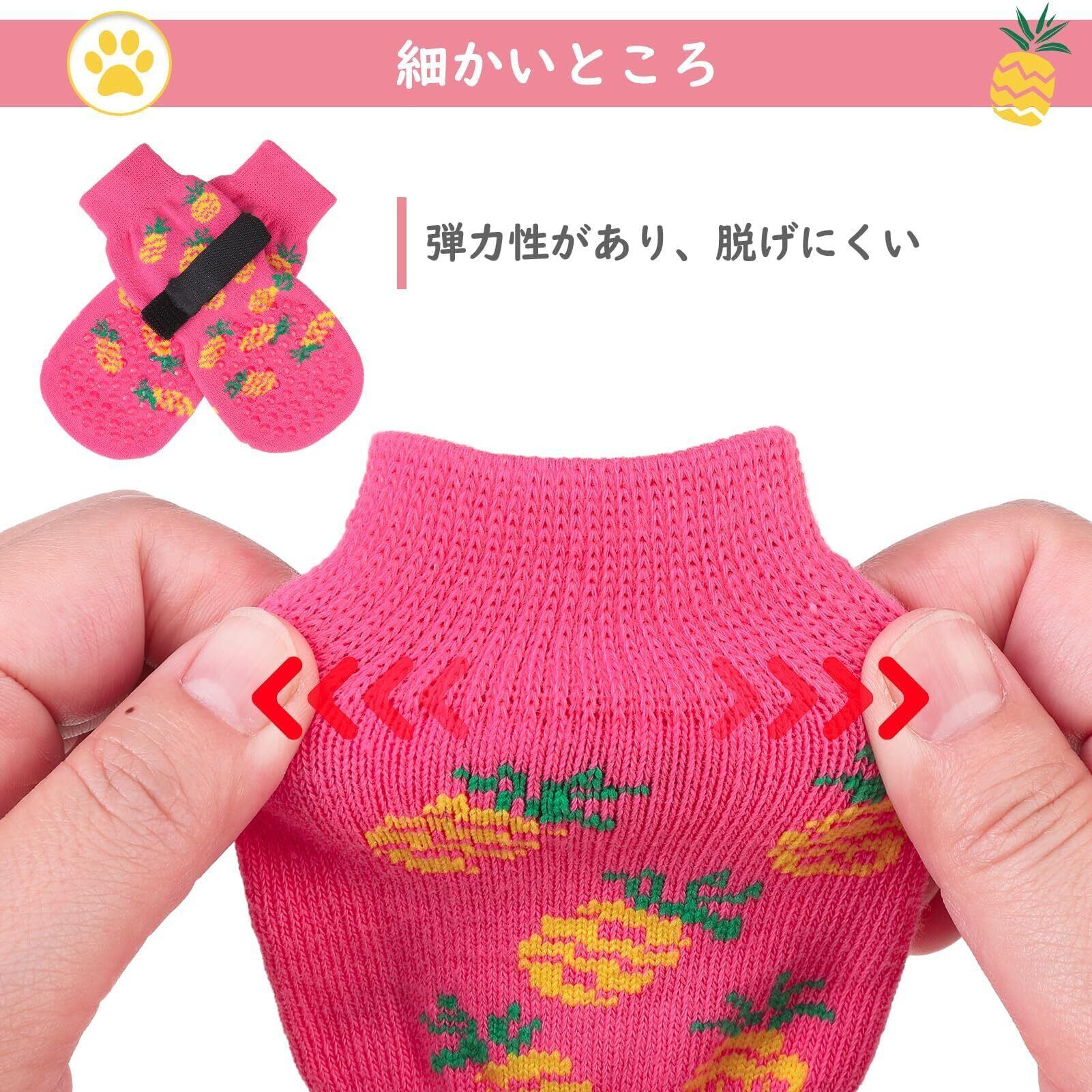 BINGPET 犬 靴下 ペット用靴下 滑り止め 4個セット 肉球保護 犬用靴下 防滑ソックス 柔らかい 脱げない かわいい 転倒防止 室内履き 通気性 老犬 介護サポート 足舐め防止 かわいい おしゃれ 小型犬 中型犬 大型犬 犬靴下 (パイナップル, L) | lcsshop