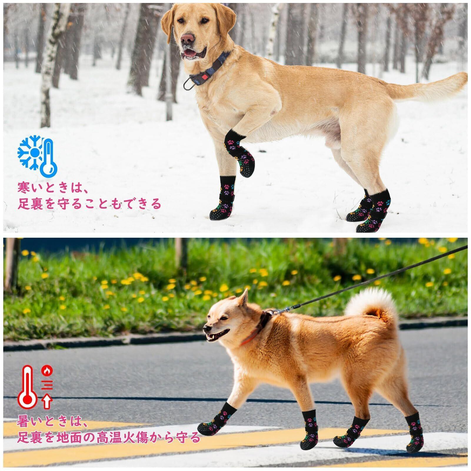 BINGPET 犬 靴下 ペット用靴下 滑り止め 4個セット 肉球保護 犬用靴下 防滑ソックス 柔らかい 脱げない かわいい 転倒防止 室内履き 通気性 老犬 介護サポート 足舐め防止 かわいい おしゃれ 小型犬 中型犬 大型犬 犬靴下 (爪ー黒, L)