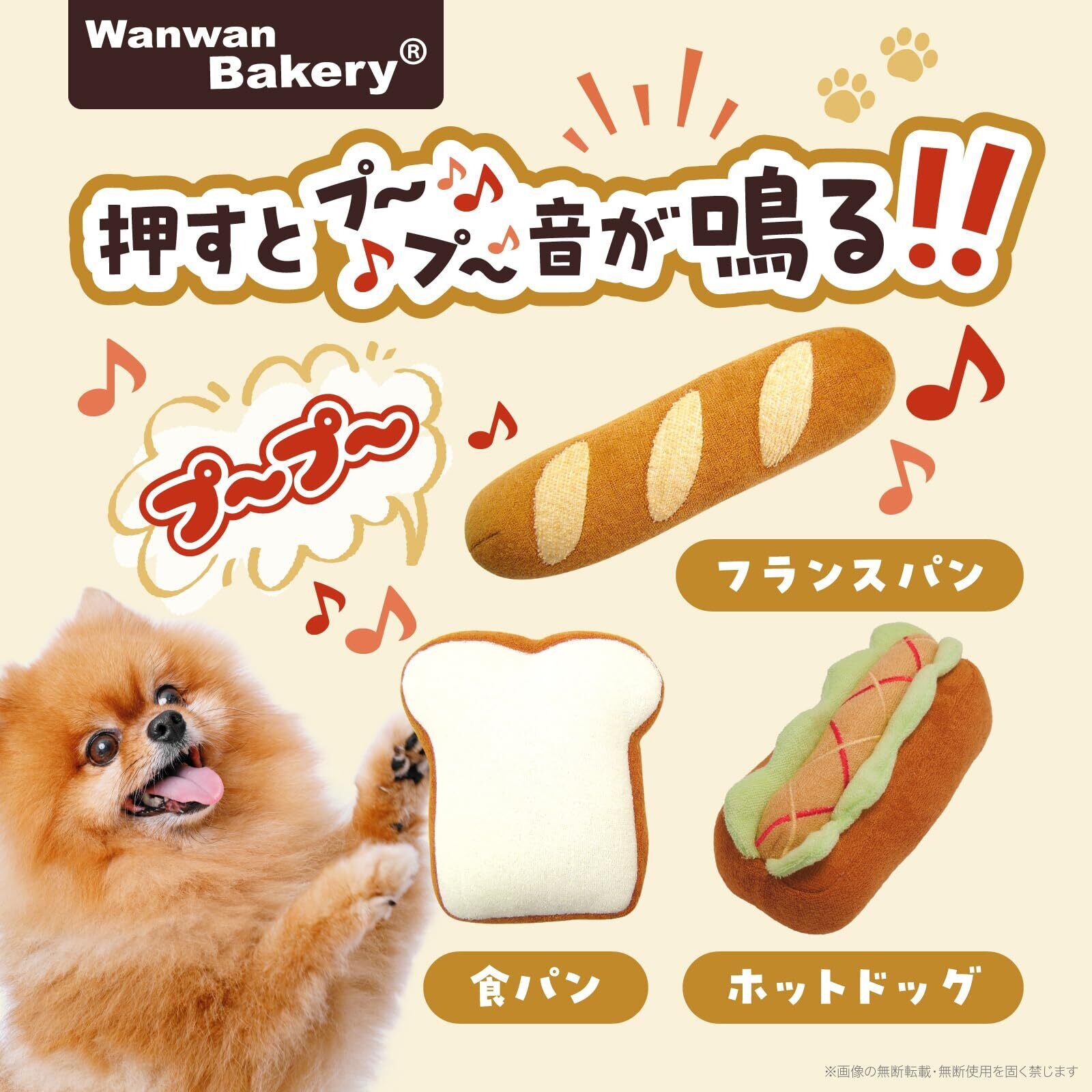 パンの形をした、「プープー」と音が鳴る犬用のおもちゃシリーズ「ワンワンベーカリー」
