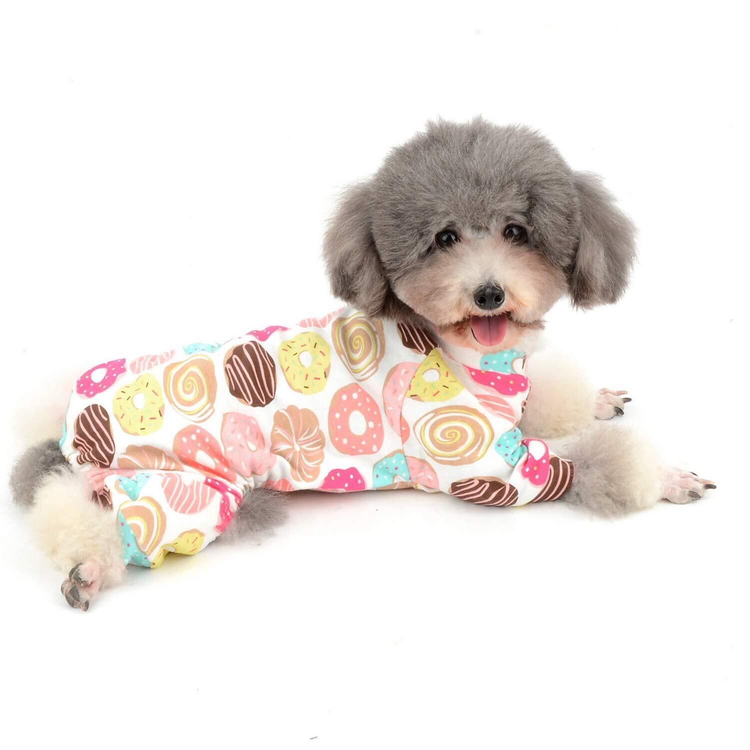 ZUNEA 犬 つなぎ パジャマ 春夏 ロンパース 小型犬 洋服 おしゃれ かわいい ドーナツ柄 ドッグウエア Tシャツ 部屋着 寝間着 抜け毛防止 ペット 犬の服 猫服 お散歩 お洒落 M | lcsshop