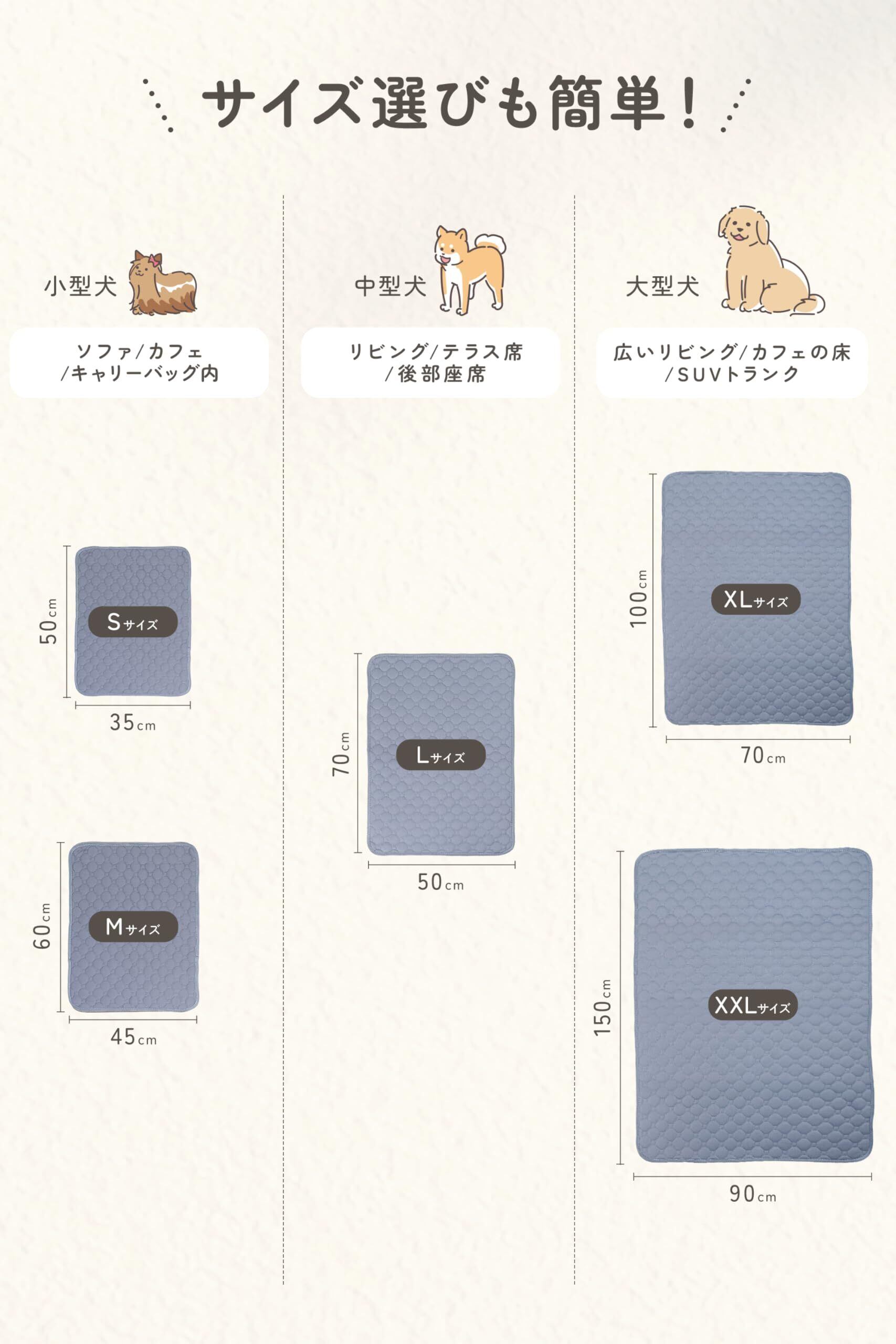 【獣医師監修・信頼の品質】きのくに動物病院の京谷先生による監修を受けた設計。専門家の視点を取り入れた安心設計で、吸水性・耐久性・洗濯性すべてに配慮されています。また、実際に使われているユーザーからも「リビングが愛犬のくつろぎ空間に」「カフェでも快適」「ドライブが楽しくなった」と高評価。飼い主さんのリアルな声が、品質の証です。