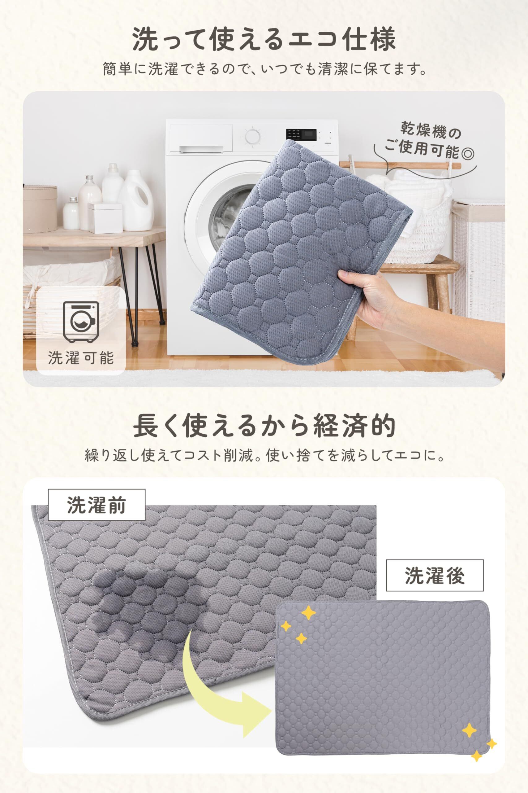 【毎日のお手入れも簡単に】日々のお手入れが簡単なのも魅力のひとつ。洗濯機・乾燥機どちらも使用可能で、いつでも清潔を保てます。忙しい日常でも気軽に洗えて、繰り返し使えるエコな仕様。乾きも早く、室内干しでもニオイが残りにくい点も嬉しいポイントです。