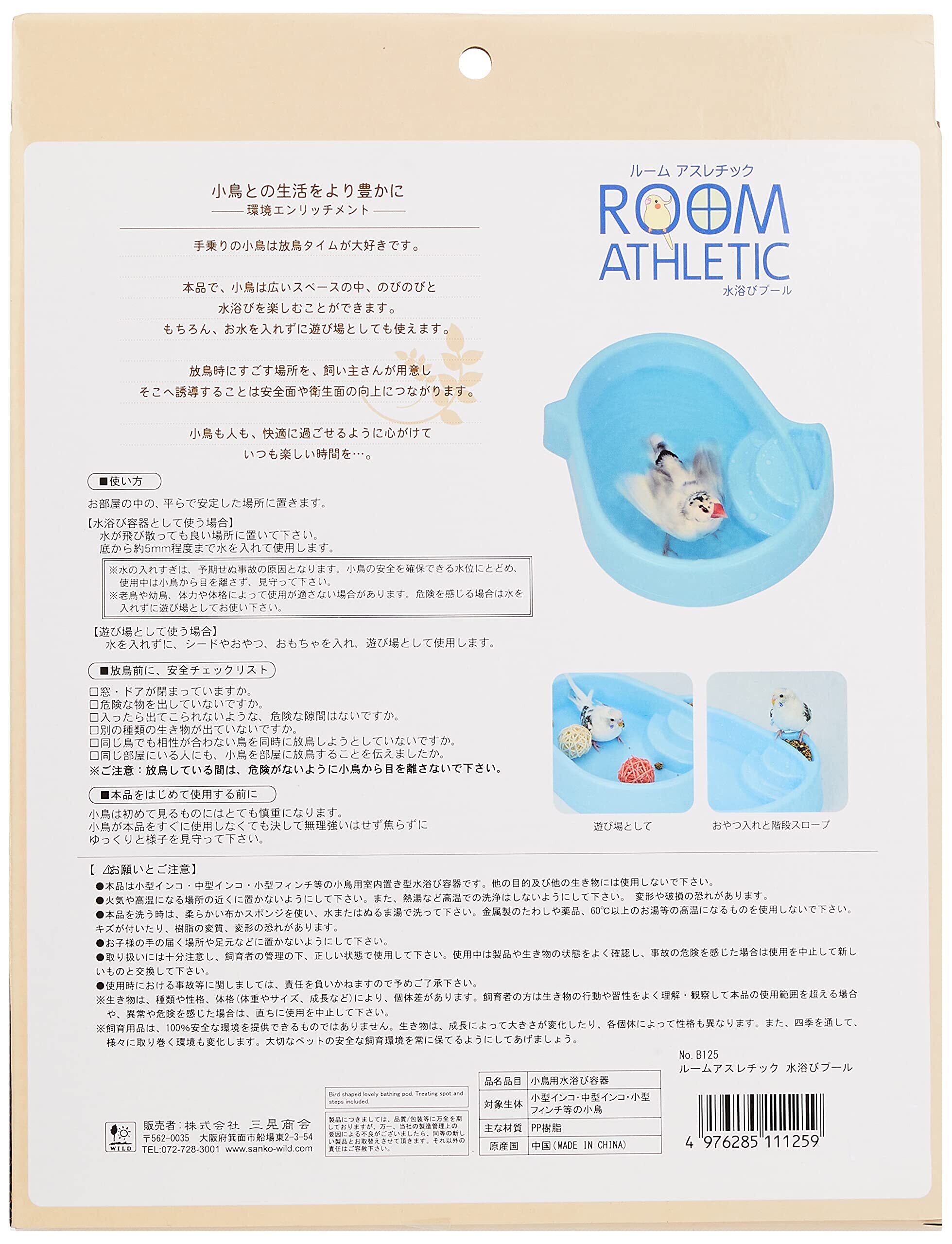 放鳥タイムに広々スペースでのびのび水浴び。小鳥の形の可愛いプール。小さなしっぽ部分には、おやつを入れて