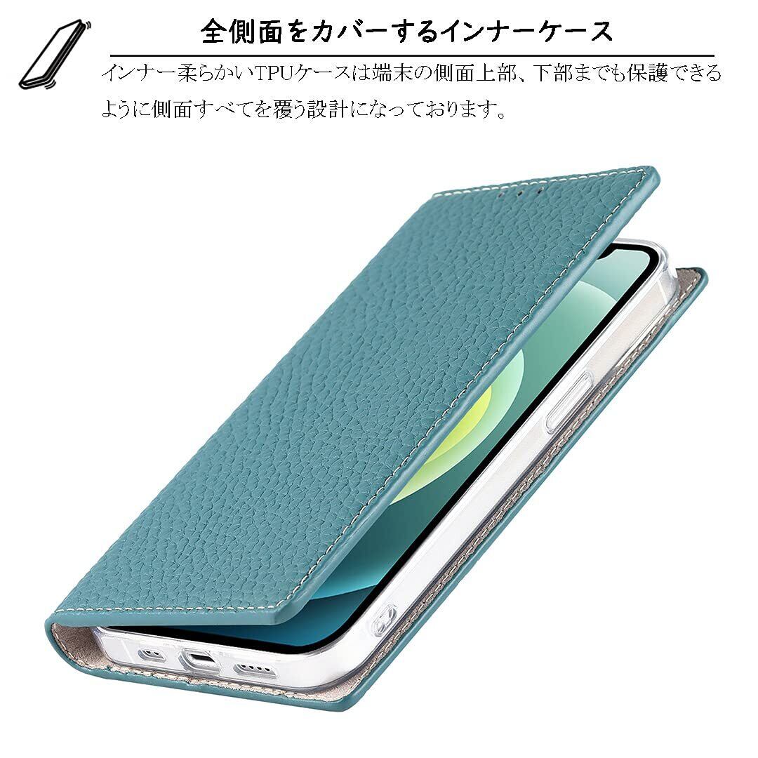 Elick iPhone 13 ケース 手帳型 高級牛革 アイフォン 13 ケース 手帳型 本革 マグネット式 スタンド機能 カード収納 ストラップ付き iPhone 13 手帳型 ケース カバー ターコイズ | lcsshop