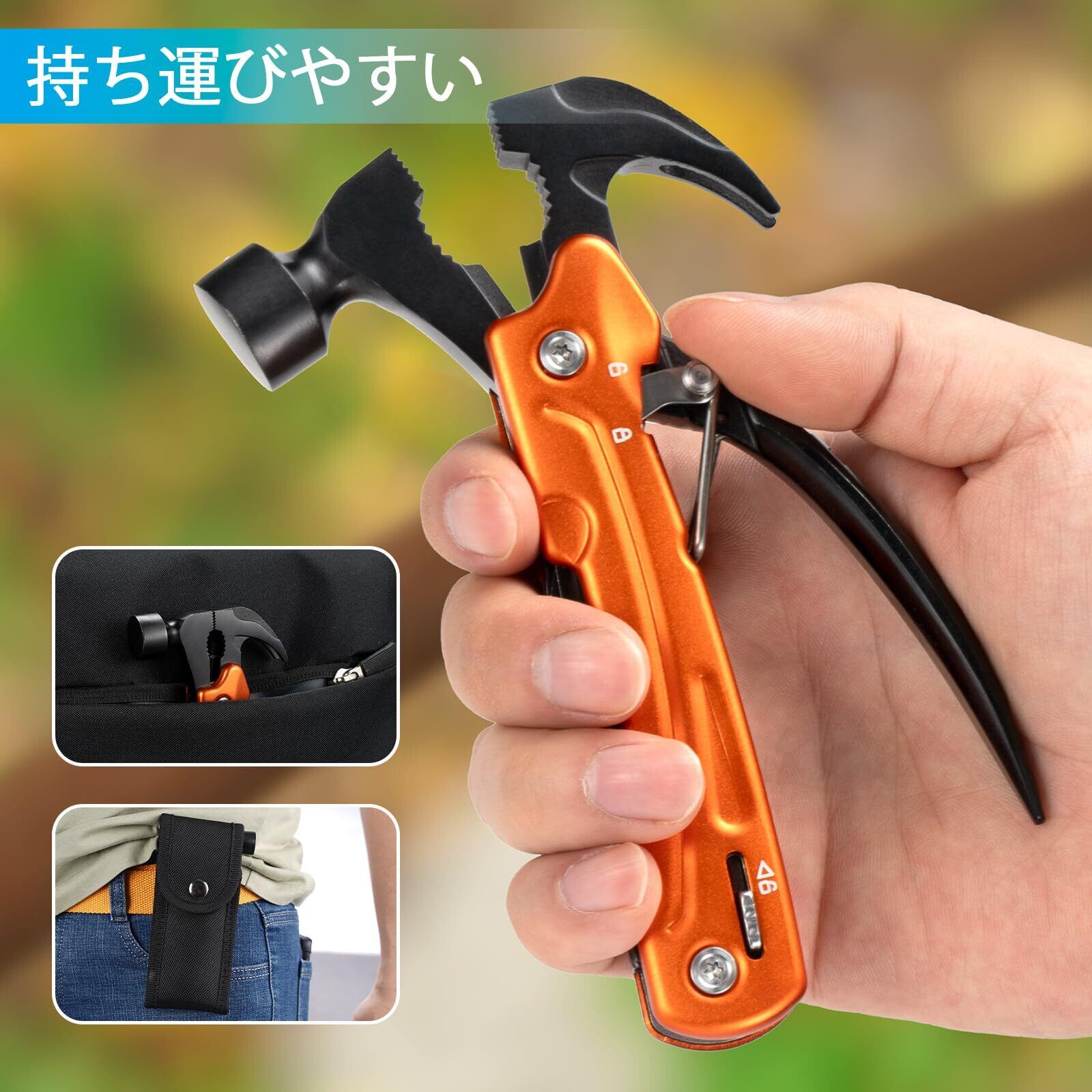 Ailenlan ペグハンマー 多機能 折り畳み 車 ハンマー 脱出 マルチツール 小型 専用ケース付き キャンプハンマー ロック機能 ステンレス製 防災グッズ 日常作業 オレンジ | lcsshop