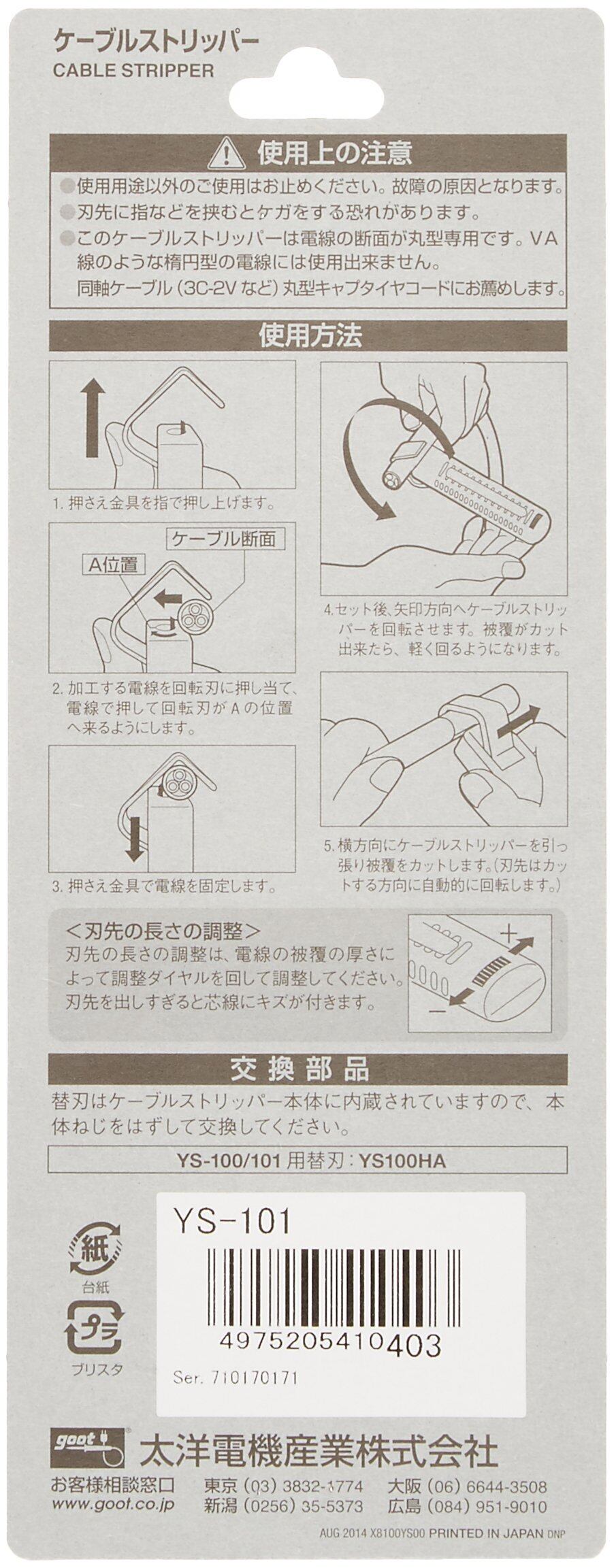 太洋電機産業(goot) ケーブルストリッパー YS-101