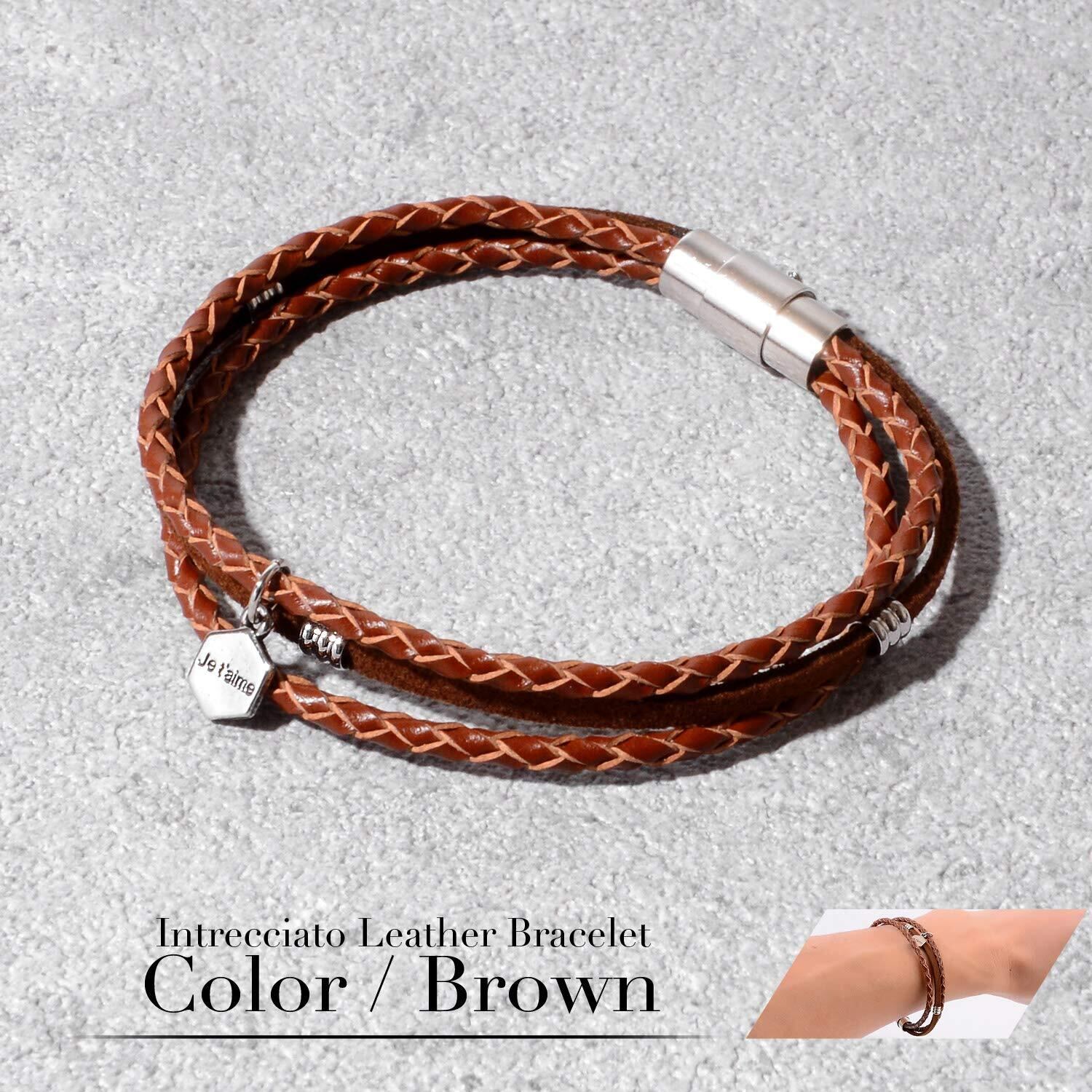 [ナル] 本革 編み込み レザー ブレスレット メンズ レディース ペア おそろい カップル 人気 革 ブランド 3連 茶 ブラウン