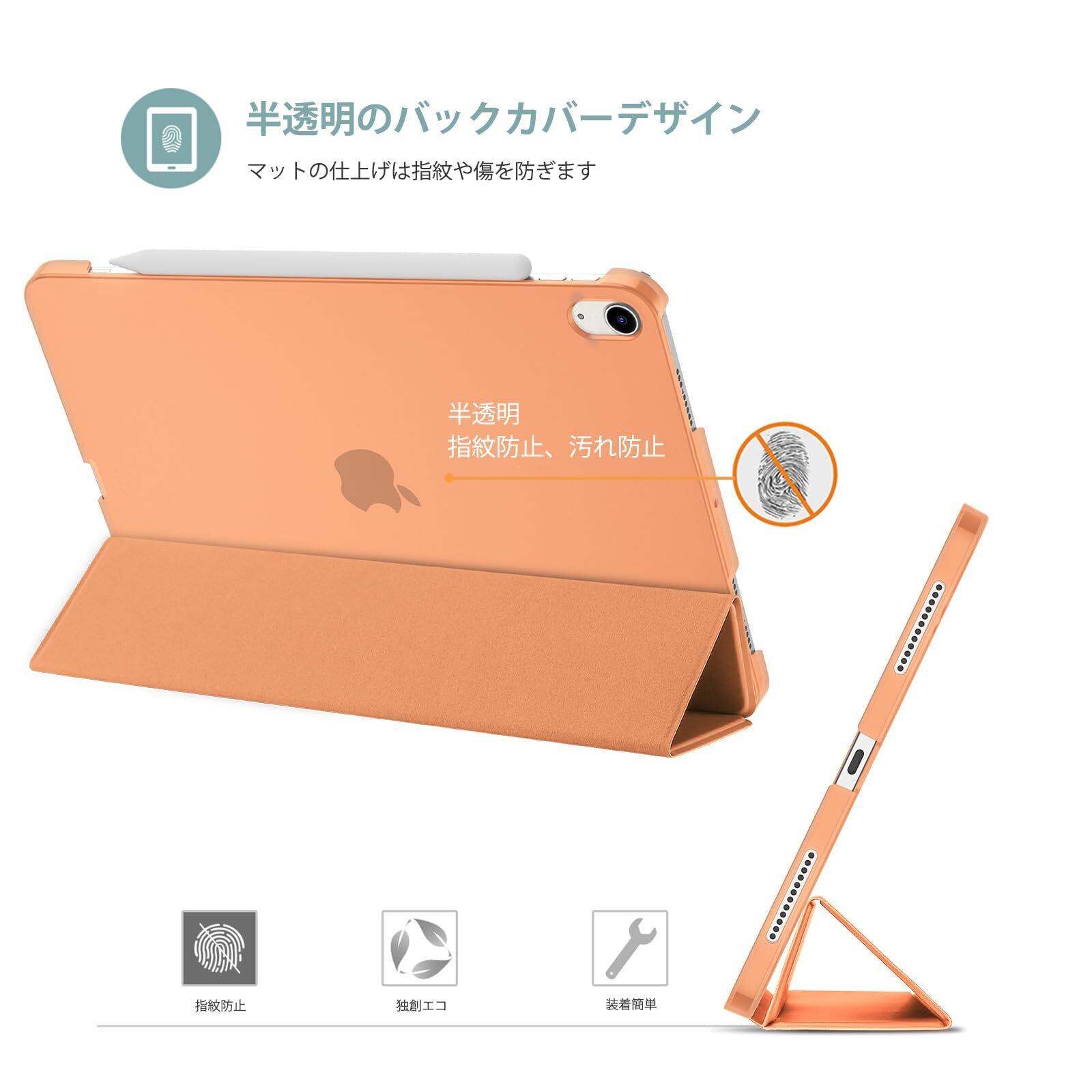 ProCase iPad Air 11インチ ケース M3 (2025) / M2 (2024) / iPad Air 第5世代 / 第4世代 軽量 スタンド 三つ折り フォリオ保護ケース 半透明バックカバー Apple Pencil 2対応 対応端末:iPad air 11インチ M3 (2025)、M2 (2024)、iPad Air5 2022、Air4 2020 - オレンジ