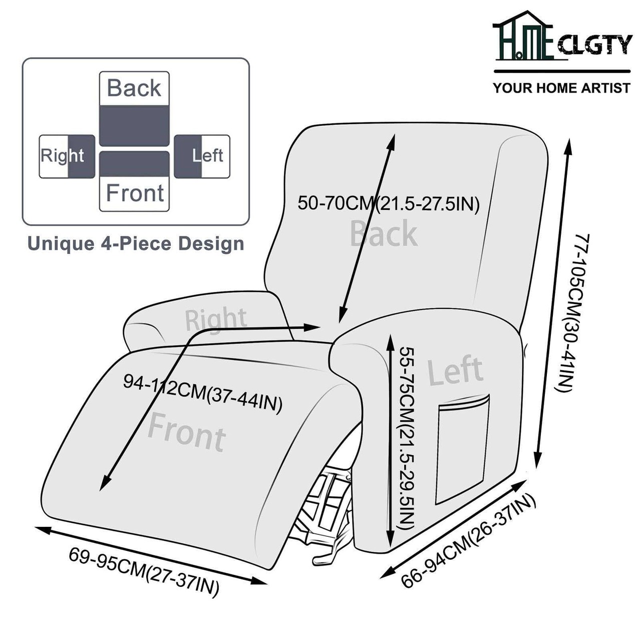 ぴったりフィット: この革新的な 4 Pieces リクライニングチェア ソファカバーは/豪華なベルベットの豪華な生地で作られています., 含む 2 アームピース,1 シートピースのセンターバックと 1 表紙裏中央, 間にソファ幅を合わせる 27-37in(69-95CM). 右側ポケットと連続フットレスト付き.