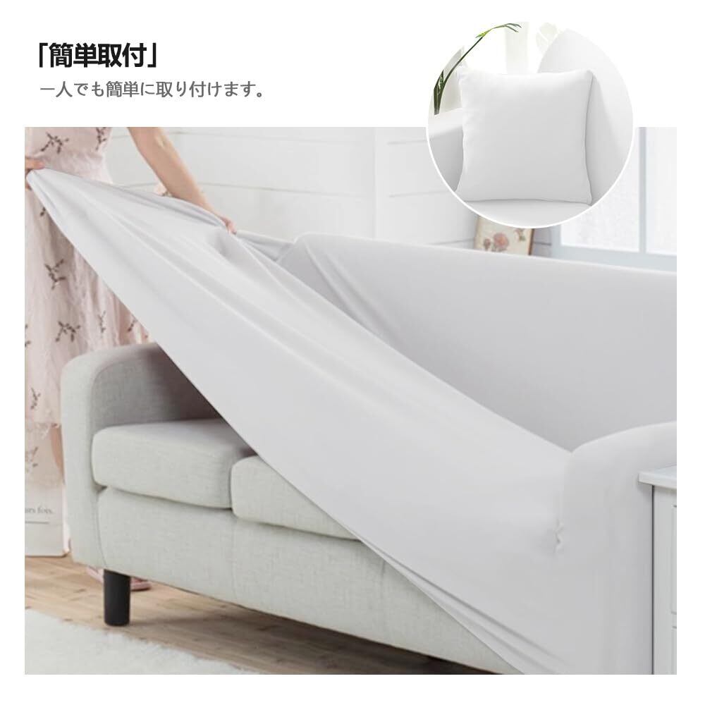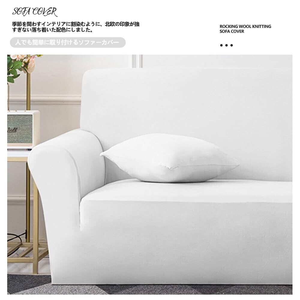ソファーカバー 北欧風 肘付き 犬猫対策 1人掛け/2人掛け/3人掛け 高弾性 保護カバー 傷防止 爪とぎ防止 滑り止め 柔らかい ストレッチ クッションカバー1枚付 伸縮素材 ソファ フィット 洗える (ホワイト, 3人掛け) | lcsshop