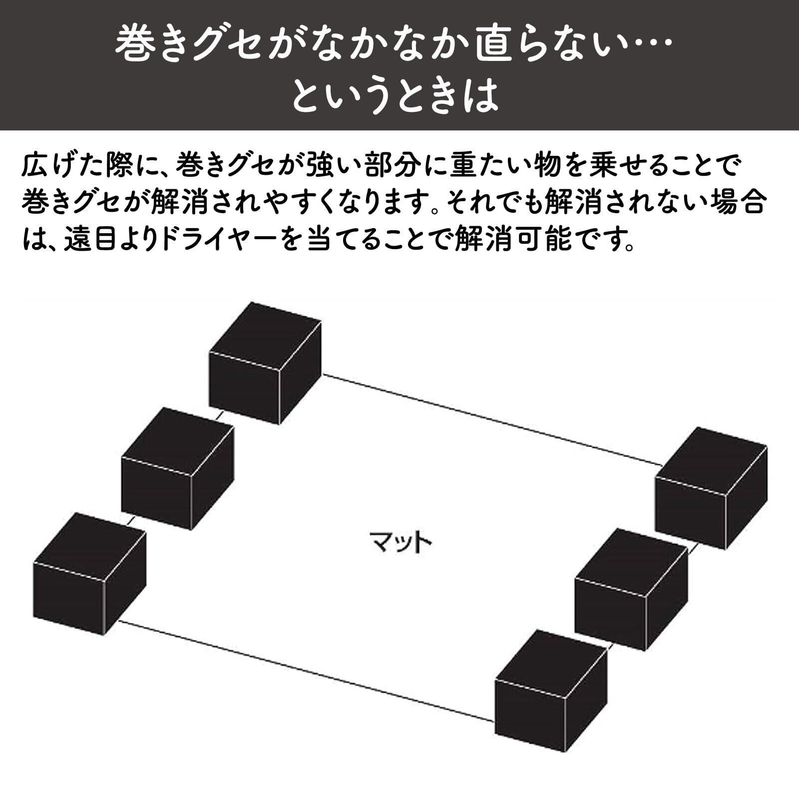 【柔らかく広げやすい】当社従来品のマットと比較して、柔らかく広げやすくなりました。※ロール梱包・材質のため、開封直後は固く丸まっておりますので、重しなどを置いて平らにして下さい。
