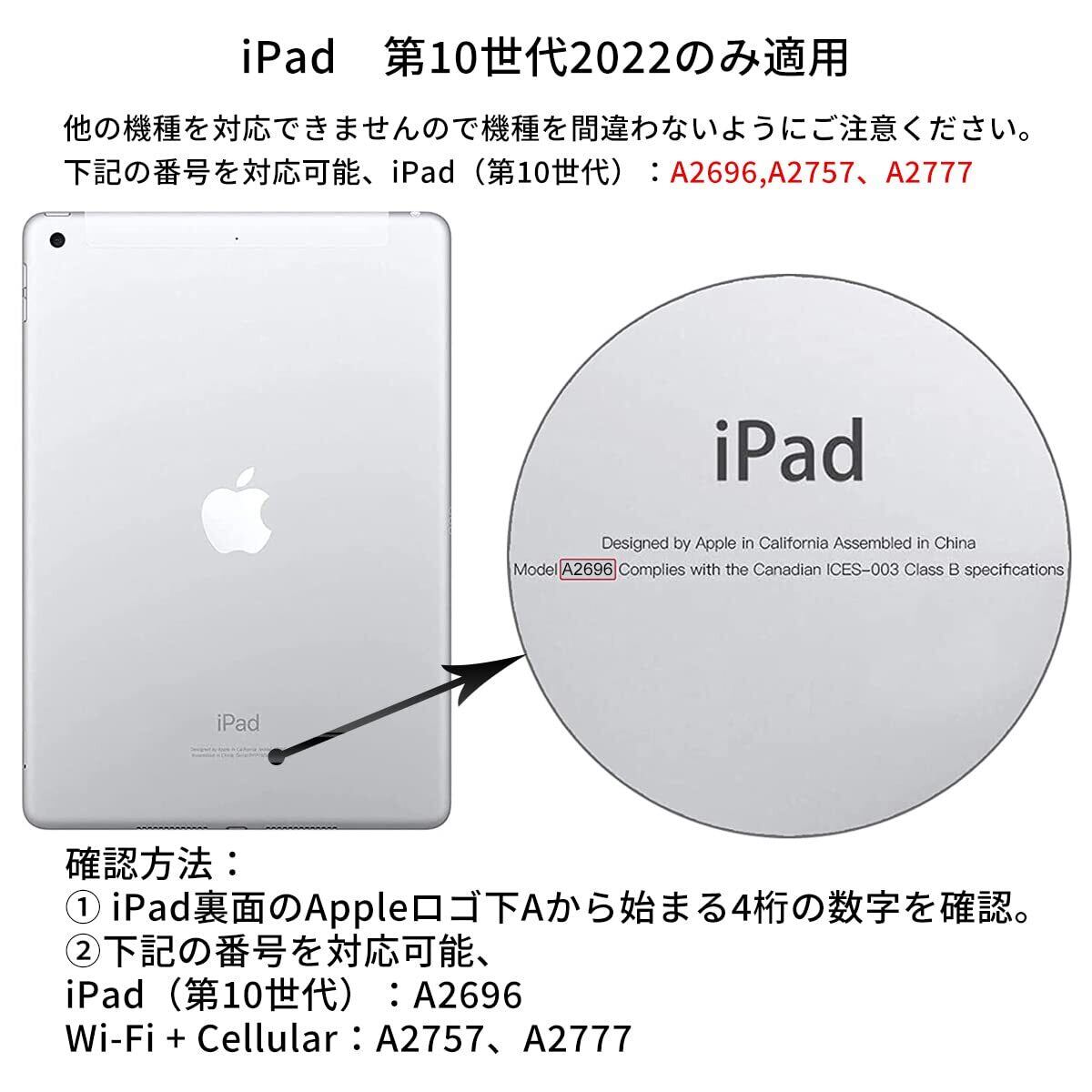 対応機種:iPad 第10世代 2022発売 10.9インチ(モデル番号:A2696 A2757 A2777)他のモデルには対応しません。 ご購入前にモデル番号をご確認いただきます。